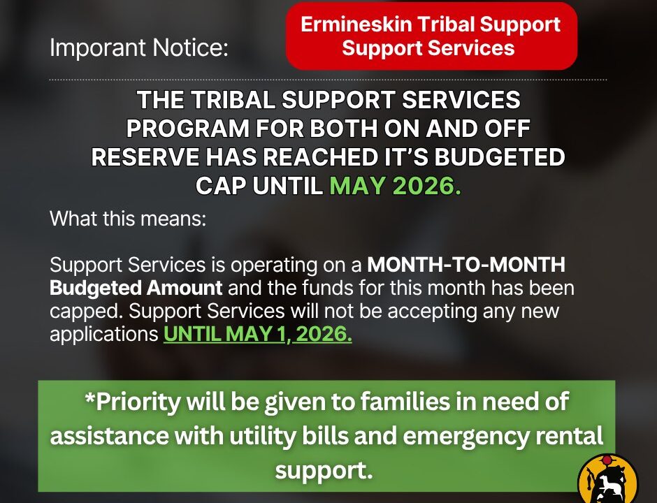 IMPORTANT ANNOUNCEMENT The tribal support services program for both on- and off-reserve has reached …
