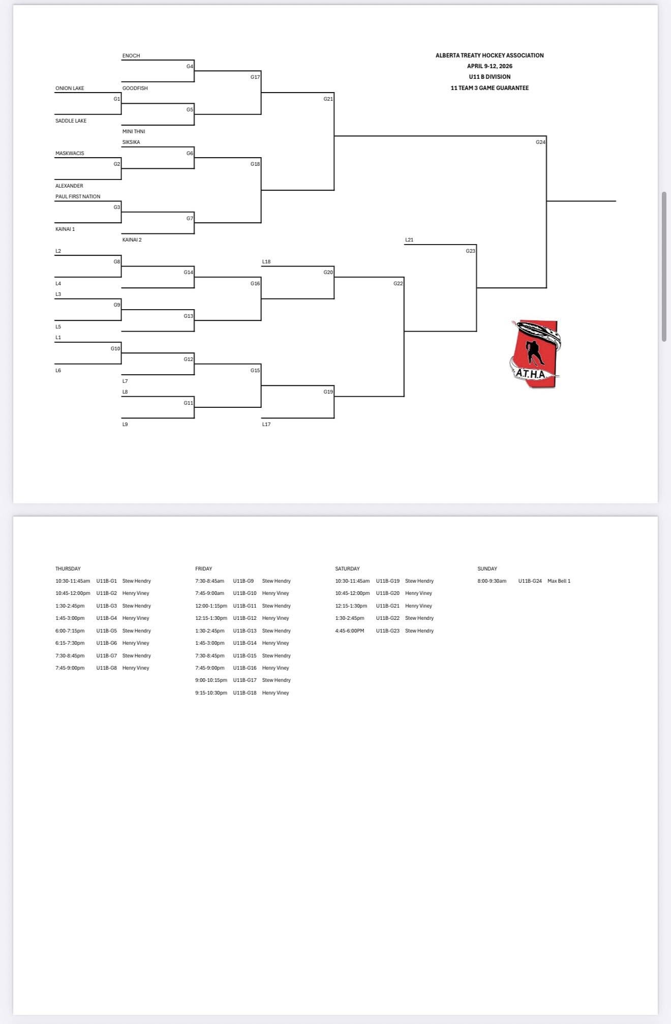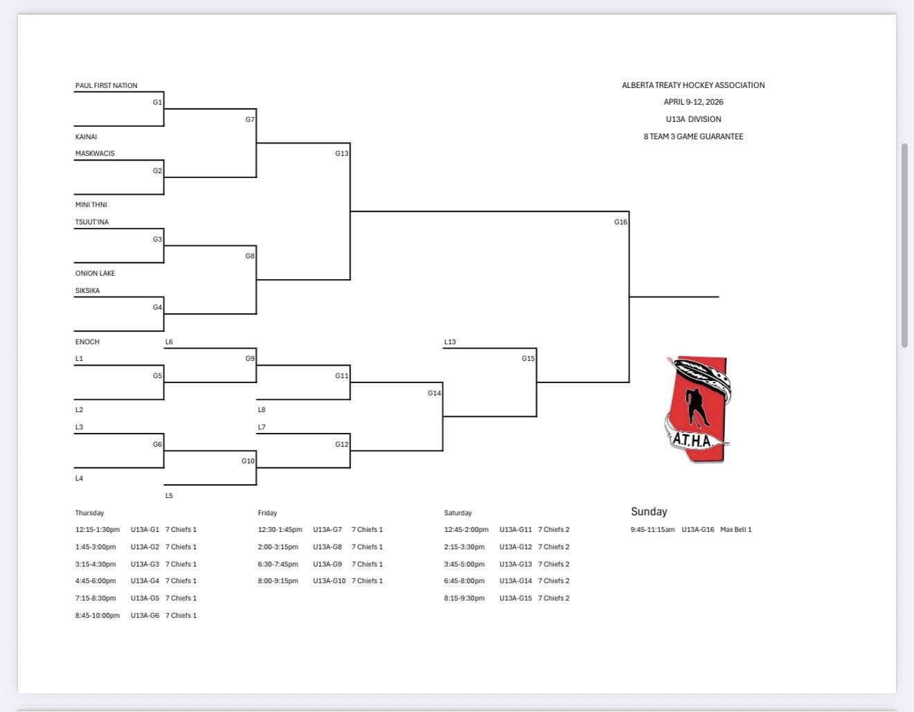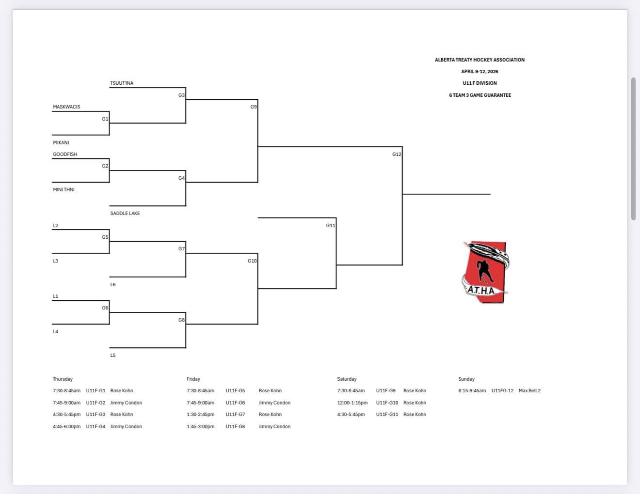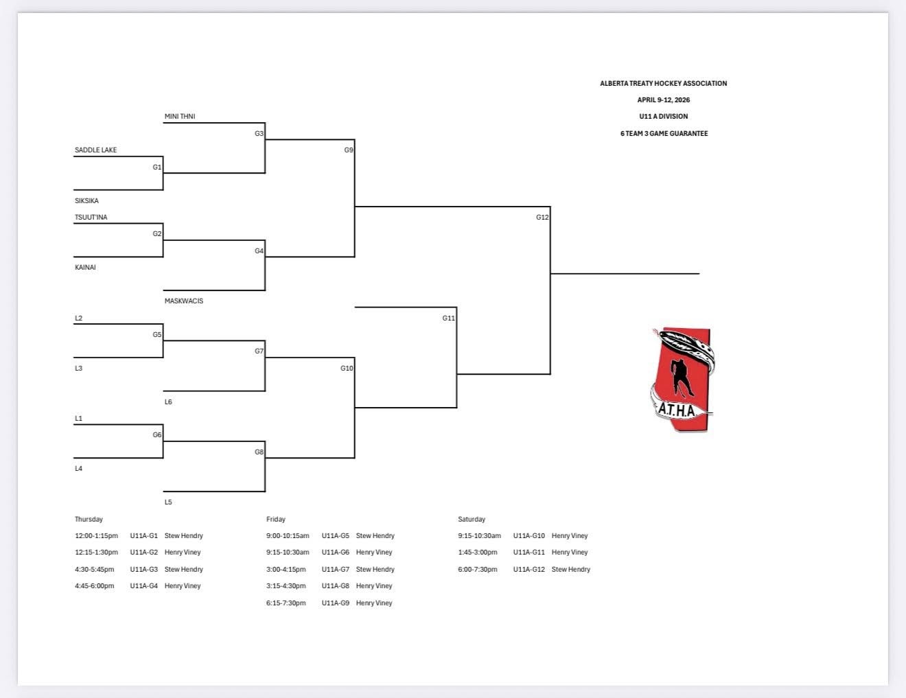 FYI: Schedules may change, see ATHA Facebook for changes