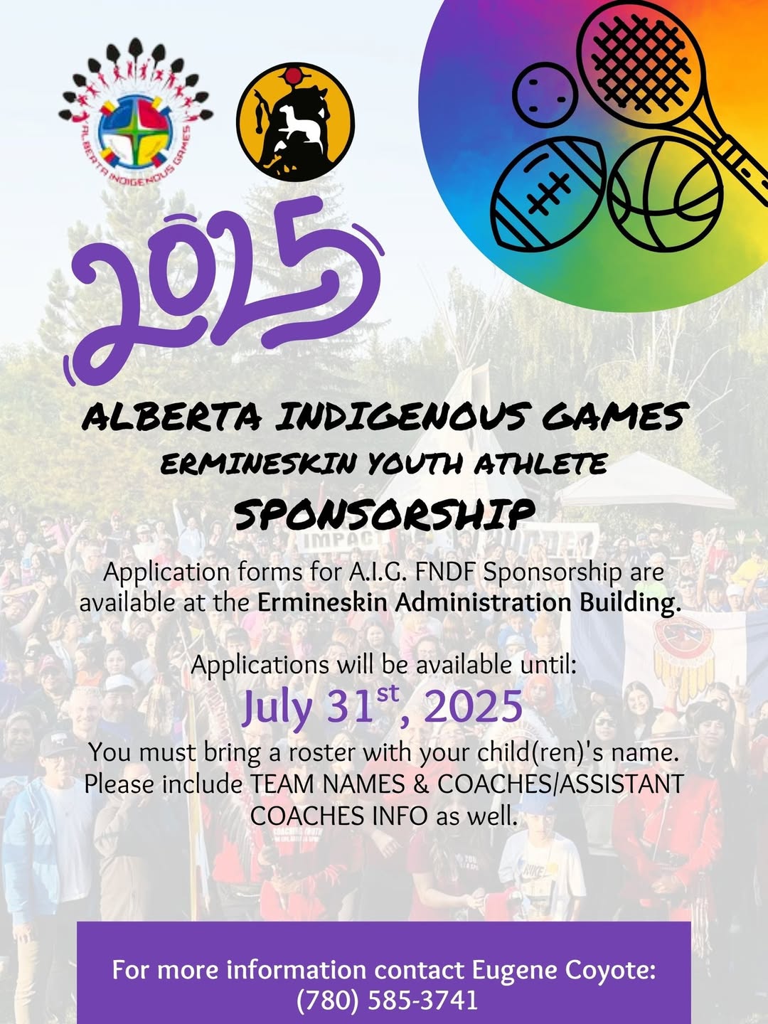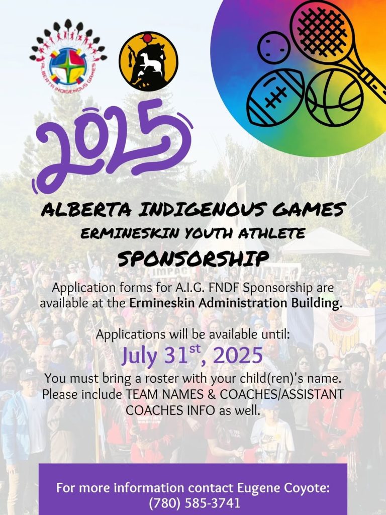 Application forms for A.I.G. 2025 FNDF Sponsorship are available at the Ermineskin Administration Building.