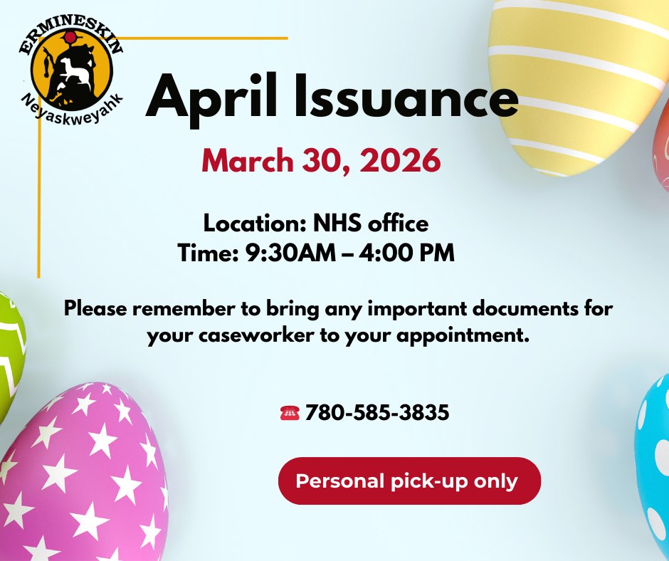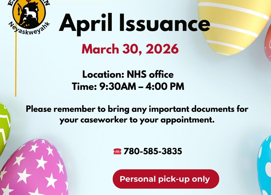 April issuance will be available for pick-up on March 30, 2026 at the NHS Office from 9:30 AM – 4:00 PM.