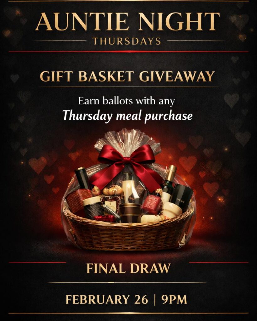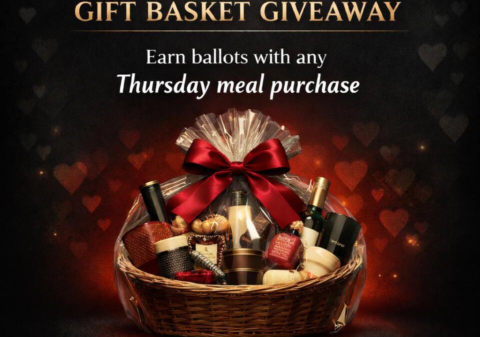 Every Thursday meal earns ballots toward the Gift Basket Final Draw Feb 26 | 9PM