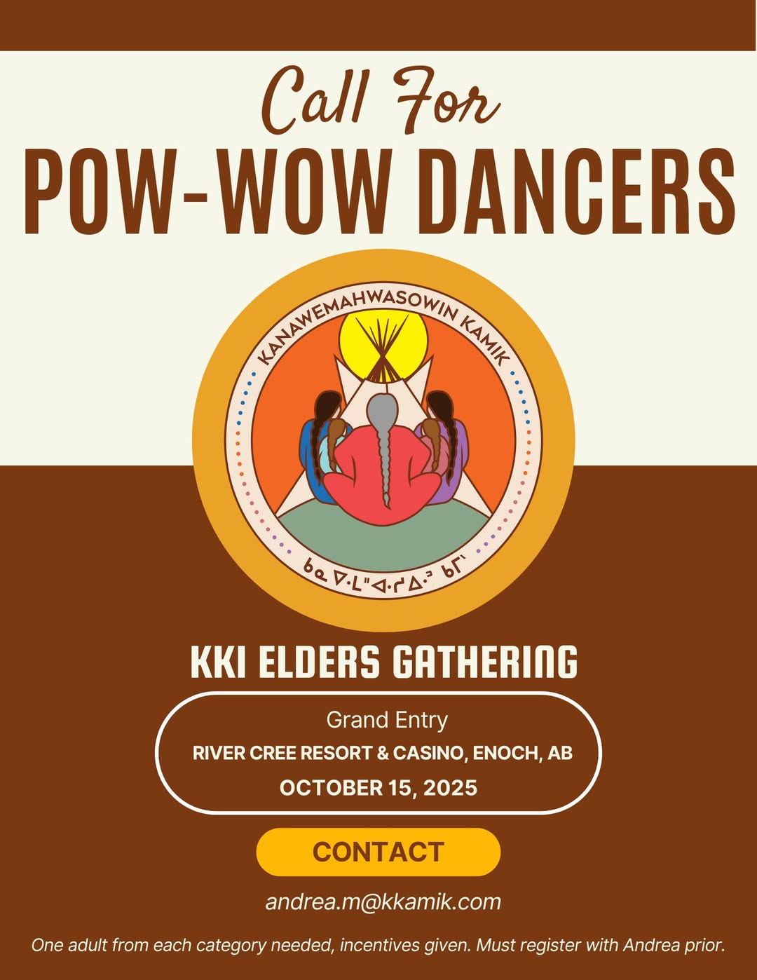 Published by Erimineskin at October 7, 2025 Categories Facebook Tags Call out for Dancers! October 15, 2025 Contact andrea.m@kkamik.com Source Share0 Related postsOctober 10, 2025Join us at the exciting Teddy Bear Fair hosted by Integrated Family Services, designed especially fo…Read moreOctober 9, 2025An amazing group of people have celebrated their journey of recovery today from the Nayoskan treatme…Read moreOctober 9, 2025**UPDATED POSTER! FRIDAY! AMAZING RACE: Country Music Legend Theme! October 10, 2025 Four Nations…Read moreOctober 9, 2025Indigenous Health Engagement by Covenant Health! Covenant Health joined us in the community to meet…Read more