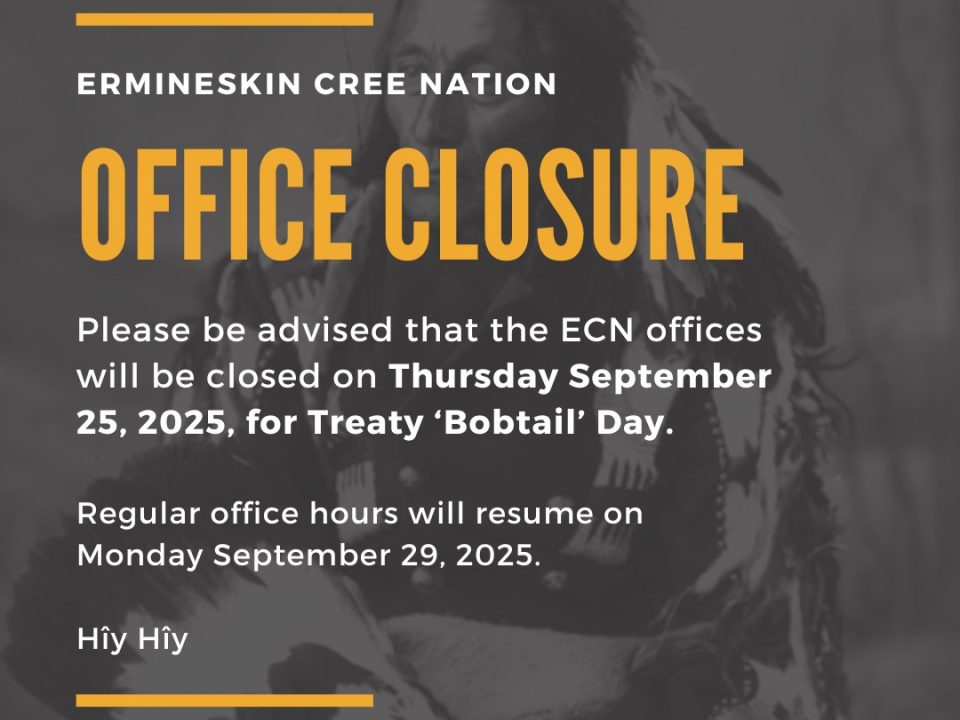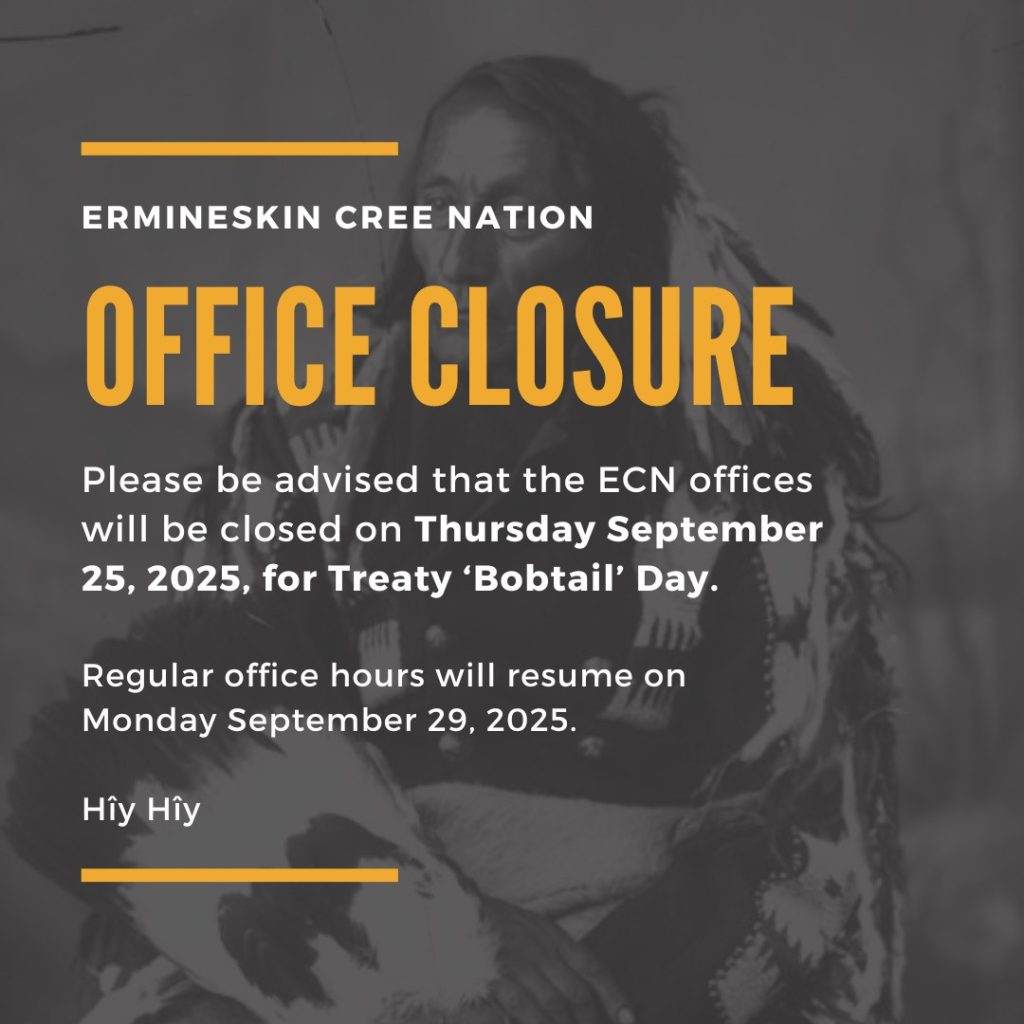 September 24, 2025Published by Erimineskin at September 24, 2025Categories FacebookPlease be advised that the ECN offices will be closed on Thursday, September 25, 2025, for Treaty ‘B…Please be advised that the ECN offices will be closed on Thursday, September 25, 2025, […]