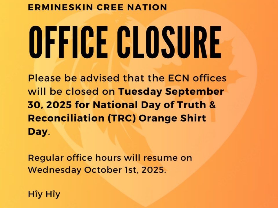 September 24, 2025Published by Erimineskin at September 24, 2025Categories FacebookPlease be advised that the ECN offices will be closed on Tuesday, September 30, 2025, for the Nation…Please be advised that the ECN offices will be closed on Tuesday, September 30, 2025, […]