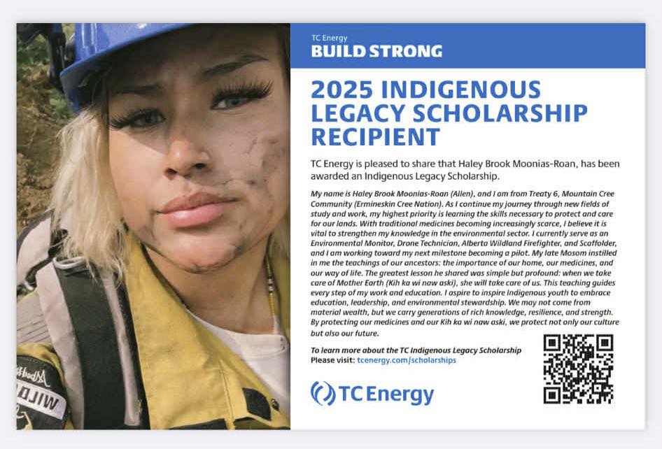 September 17, 2025Published by Erimineskin at September 17, 2025Categories FacebookCongratulations to Haley Roan! A recipient for the 2025 TC Energy Indigenous Legacy Scholarship!Congratulations to Haley Roan! A recipient for the 2025 TC Energy Indigenous Legacy Scholarship! Source