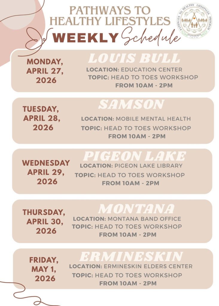 April 22, 2026Published by Erimineskin at April 22, 2026Categories FacebookChilli & Bannock Fundraiser Ermineskin Elders Centre April 28, 2026 11:30am-1:30pm Call for Pre…Chilli & Bannock Fundraiser 📍Ermineskin Elders Centre 📅 April 28, 2026 🕐 11:30am-1:30pm Call for […]