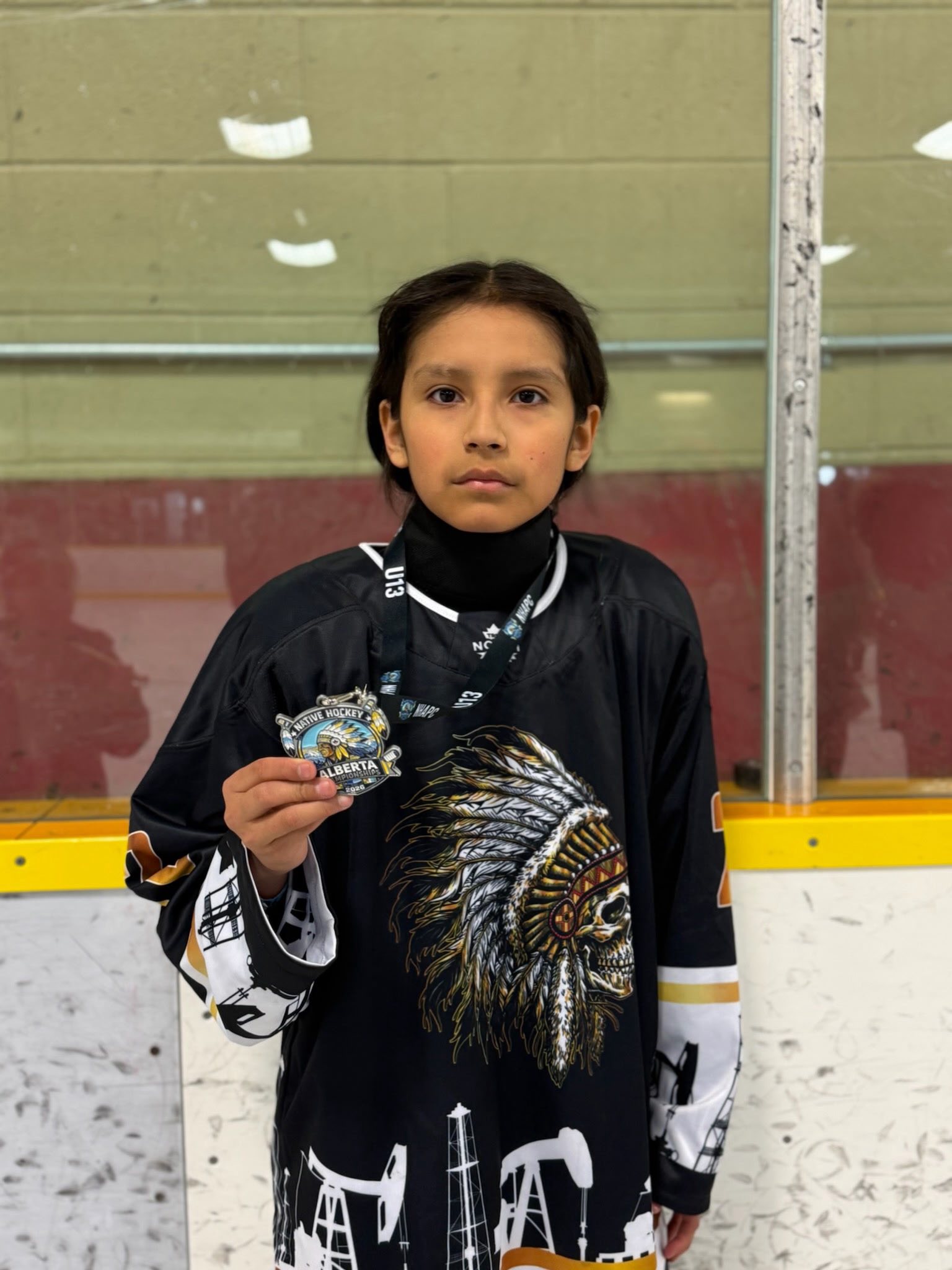 Congratulations Kieran Rattlesnake on your U11 gold medal, and Viktor Rattlesnake on your U13 silver medal. They both played for the Slave Lake team.