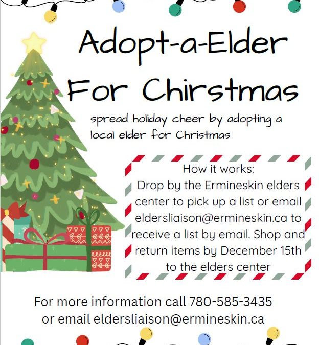 Published by Erimineskin at November 17, 2025 Categories Facebook Tags Contact Elders if you have any questions Source Share0 Related postsNovember 17, 2025Elder’s Centre is seeking volunteers for the Christmas Dinner to help with cooking and serving. *Mu…Read moreNovember 17, 2025ELDERS CHRISTMAS DINNER Ermineskin Elders Centre December 16, 2025 11:30am-3:30pm If you need tr…Read moreNovember 17, 2025Between the Ears Equine Healing & Development Program Our winter sessions are now taking place, any…Read moreNovember 17, 2025Commenting has been turned off for this post.Read more