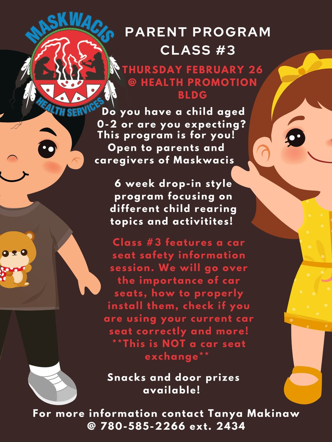 Contact Tanya Makinaw for more details and please encourage any new parents, expectant parents and parents with toddlers to register for classes. This applies current parents too