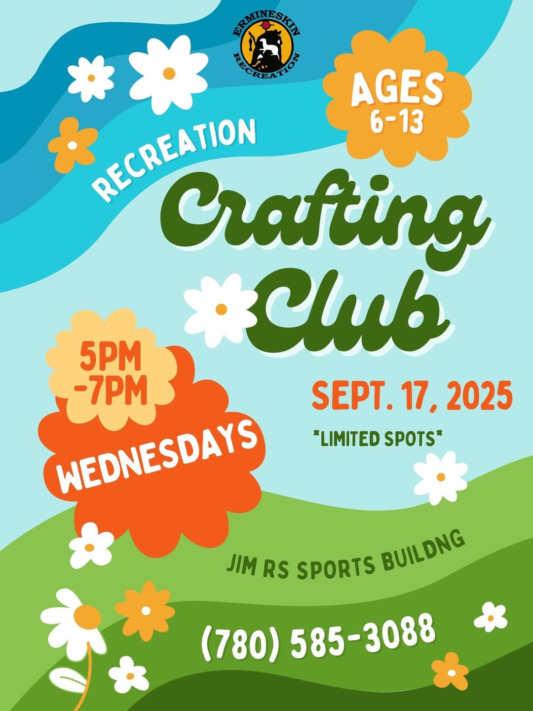 Crafting Club WEDNESDAYS, starting September 17th, 2025 5PM-7PM @ Jim RS Building
