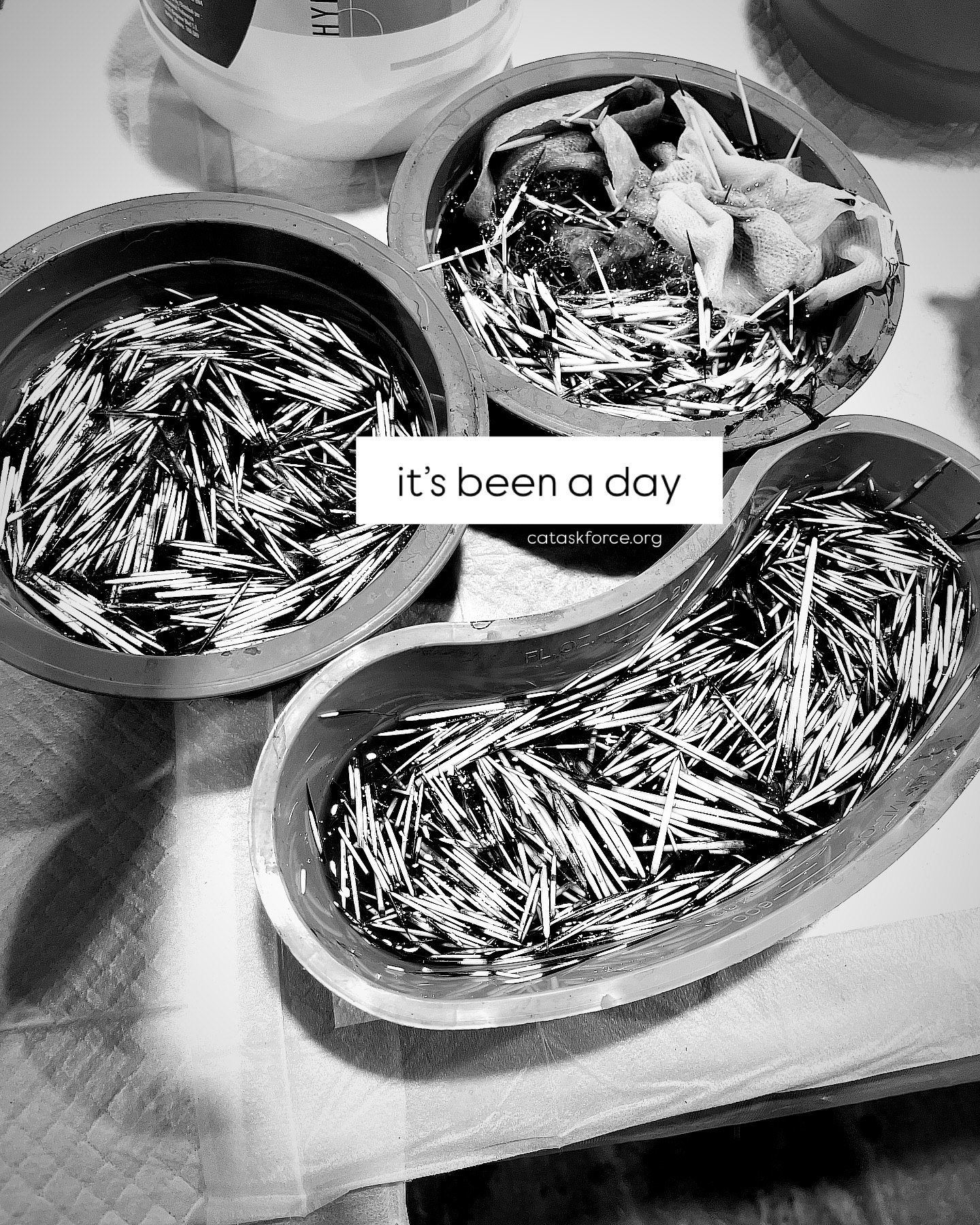 Quills, everywhere! Lots of curious dogs and angry porcupines around here.