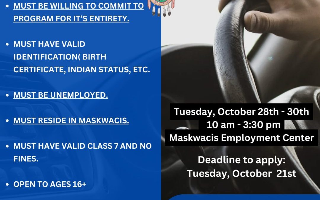 *Must have valid identification ( BIRTH CERTIFICATE, INDIAN STATUS, ETC.