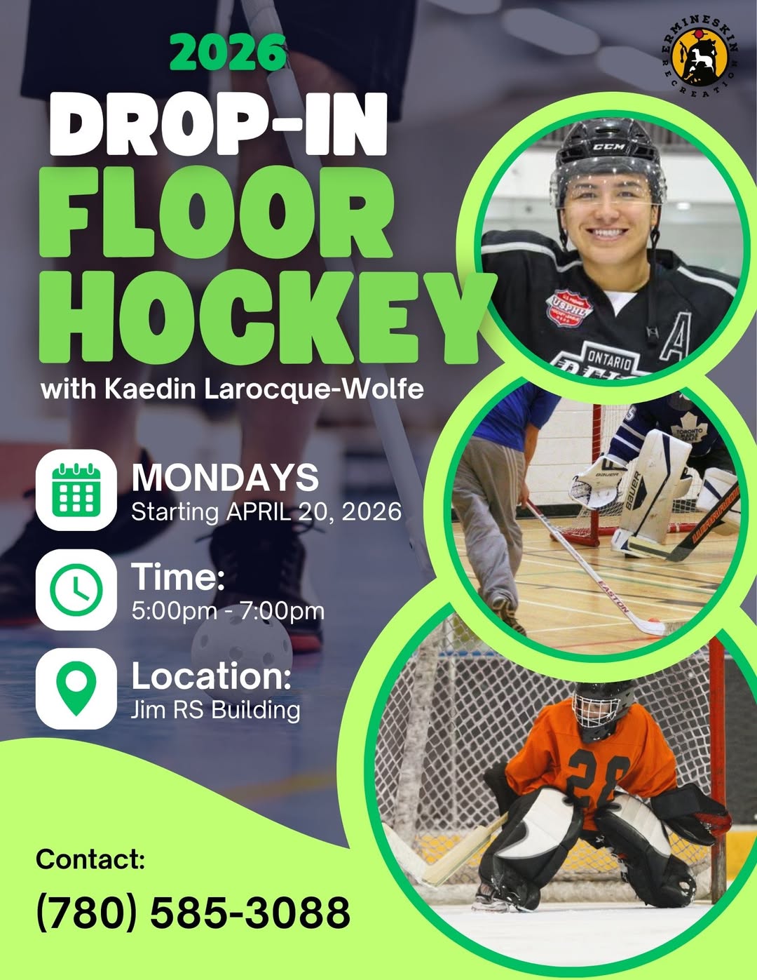 Published by Erimineskin at April 13, 2026 Categories Facebook Tags Drop-in Floor Hockey 📅 APRIL 20th, 2026 📍JIM RS BUILDING 🕐 5pm – 7pm Source Share0 Related postsApril 16, 2026Submit your applications, resumes and criminal record check to the ECN Personnel Department: faith@e…Read moreApril 16, 2026Commenting has been turned off for this post.Read moreApril 15, 2026PLEASE BE ADVISEDRead moreApril 15, 2026Congratulations to all of our athletes who competed in the AB Native Provincials and the Alberta Tre…Read more