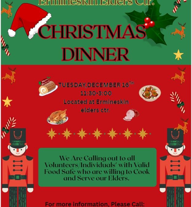 Elder’s Centre is seeking volunteers for the Christmas Dinner to help with cooking and serving. *Mu…