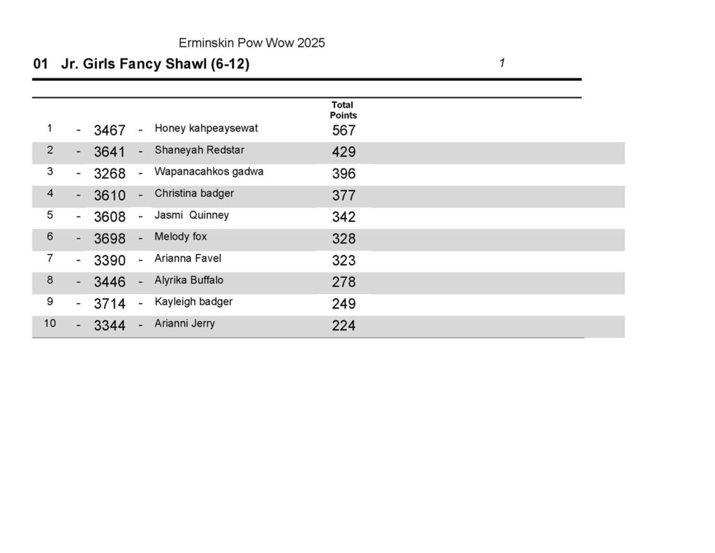 Published by Erimineskin at June 1, 2025 Categories Facebook Tags Ermineskin Powwow Results. Source Share0 Related postsOctober 21, 2025Hey Hockey Families! Is your child playing on an elite hockey team? We’d love to hear all about the…Read moreOctober 21, 2025Adult & Elder Health Info Session October 21, 2025 & October 22, 2025 Call 780-585-2266 EXT 2442 to…Read moreOctober 21, 2025Adult & Elder Health Info Session October 21, 2025 & October 22, 2025 Call 780-585-2266 EXT 2442 to…Read moreOctober 21, 2025Rawhide mini drum earrings it was a challenge but the ladies did it. Awesome teaching by Willa Nepoo…Read more