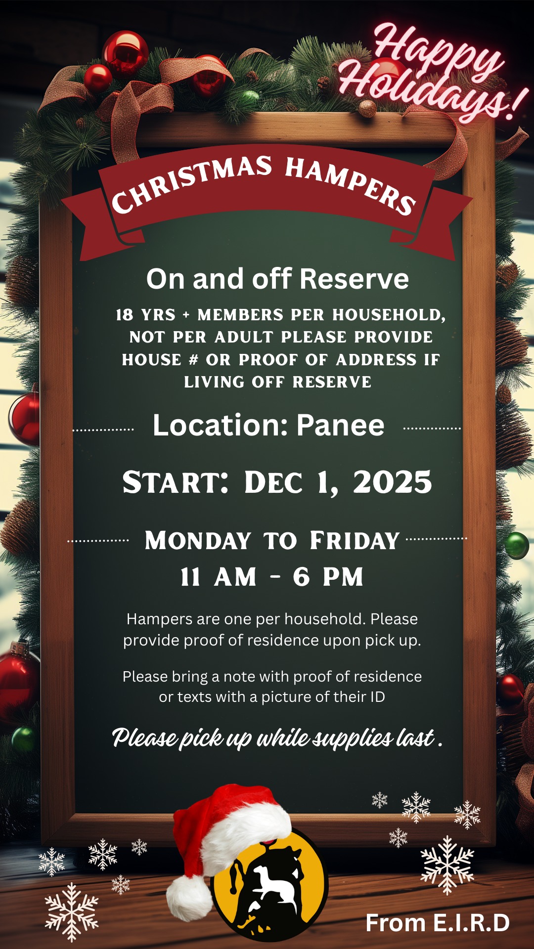 Please arrive early to ensure hampers are still available. Pick-up is on a first-come, first-served basis while supplies last.