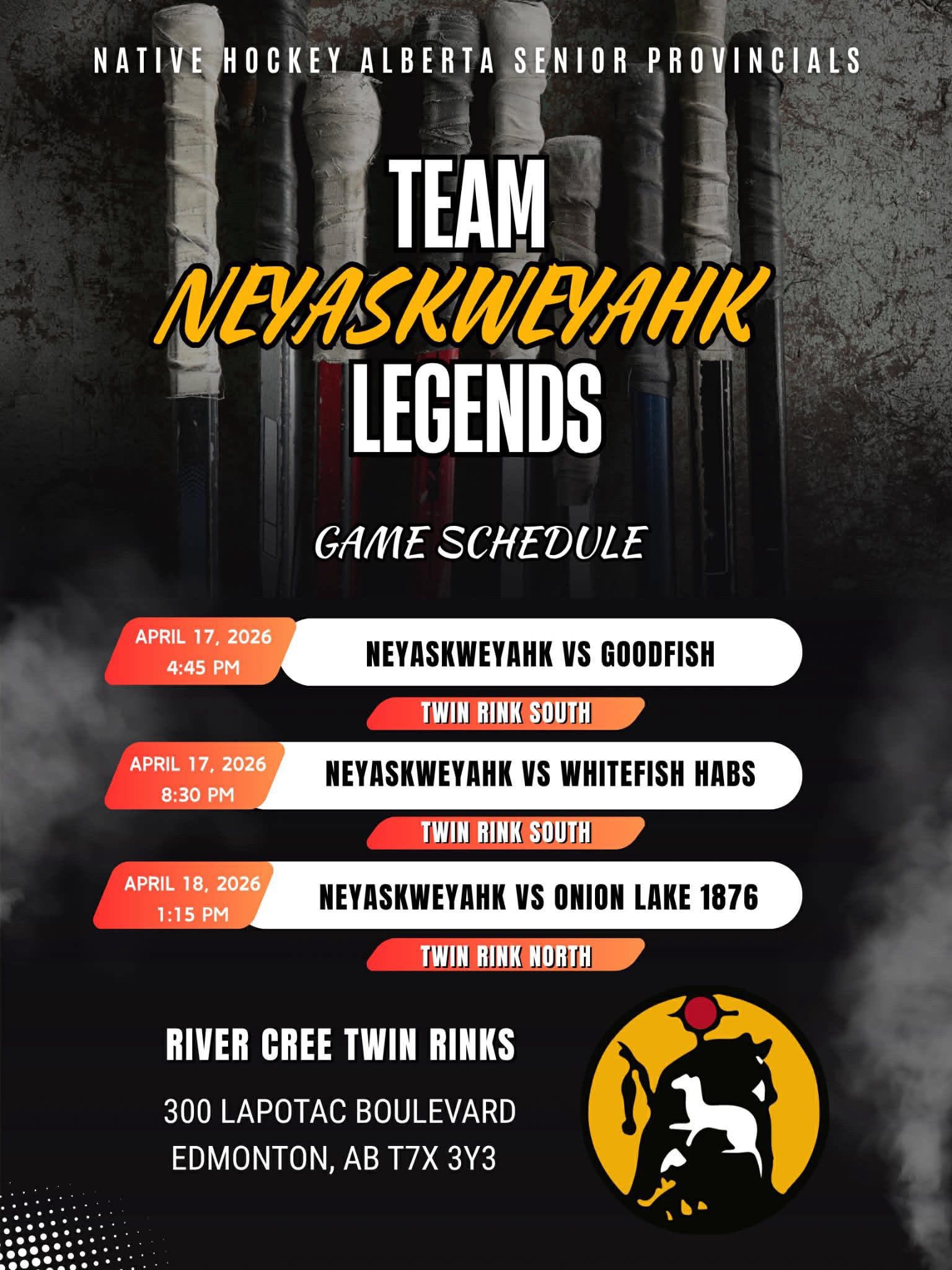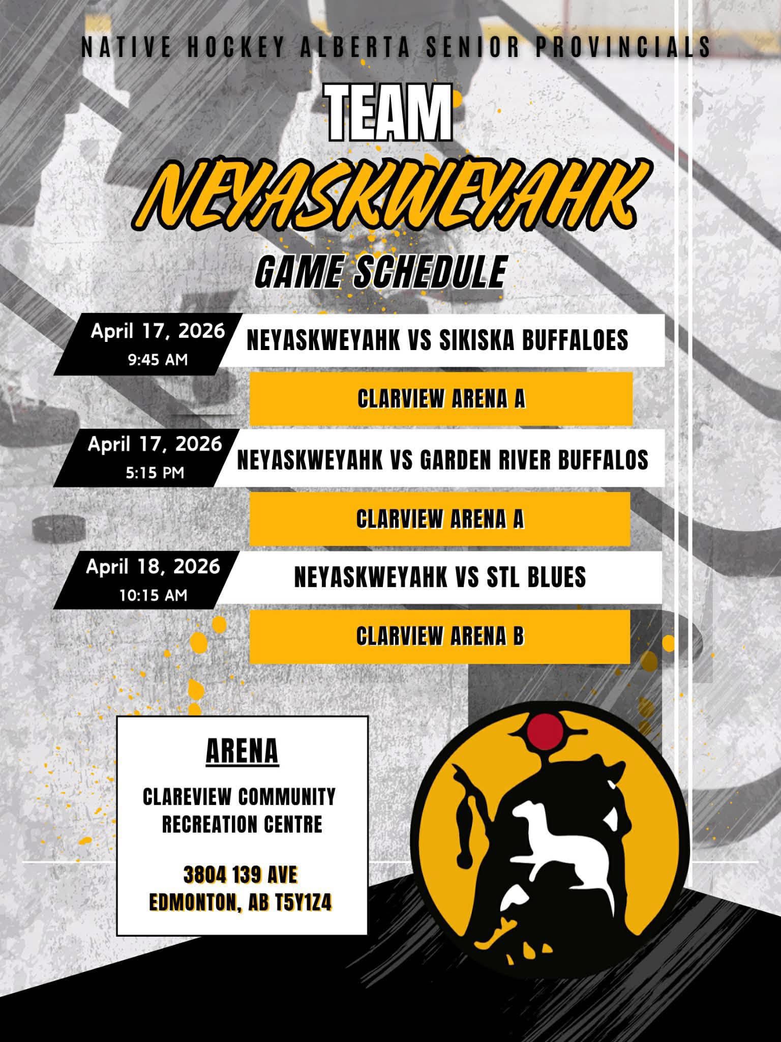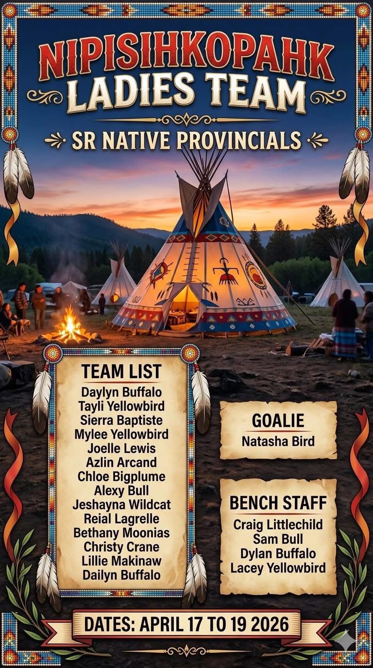 Published by Erimineskin at April 18, 2026 Categories Facebook Tags Good luck to all the teams competing at the Alberta St. native Provincials! Source Share0 Related postsApril 18, 2026Treaty 6 Reign with a dominant 7–0 win over Paddle Prairie! Next game is at 7:15 PM — if you’re at…Read moreApril 18, 2026Congratulations to the Neyaskweyahk (18+) Men’s Team on your impressive 7-0 victory over the Sturgeo…Read moreApril 17, 2026It was a tough loss for the Senior Men’s (35+) Neyaskweyahk team in a hard-fought game tonight. The …Read moreApril 16, 2026Submit your applications, resumes and criminal record check to the ECN Personnel Department: faith@e…Read more