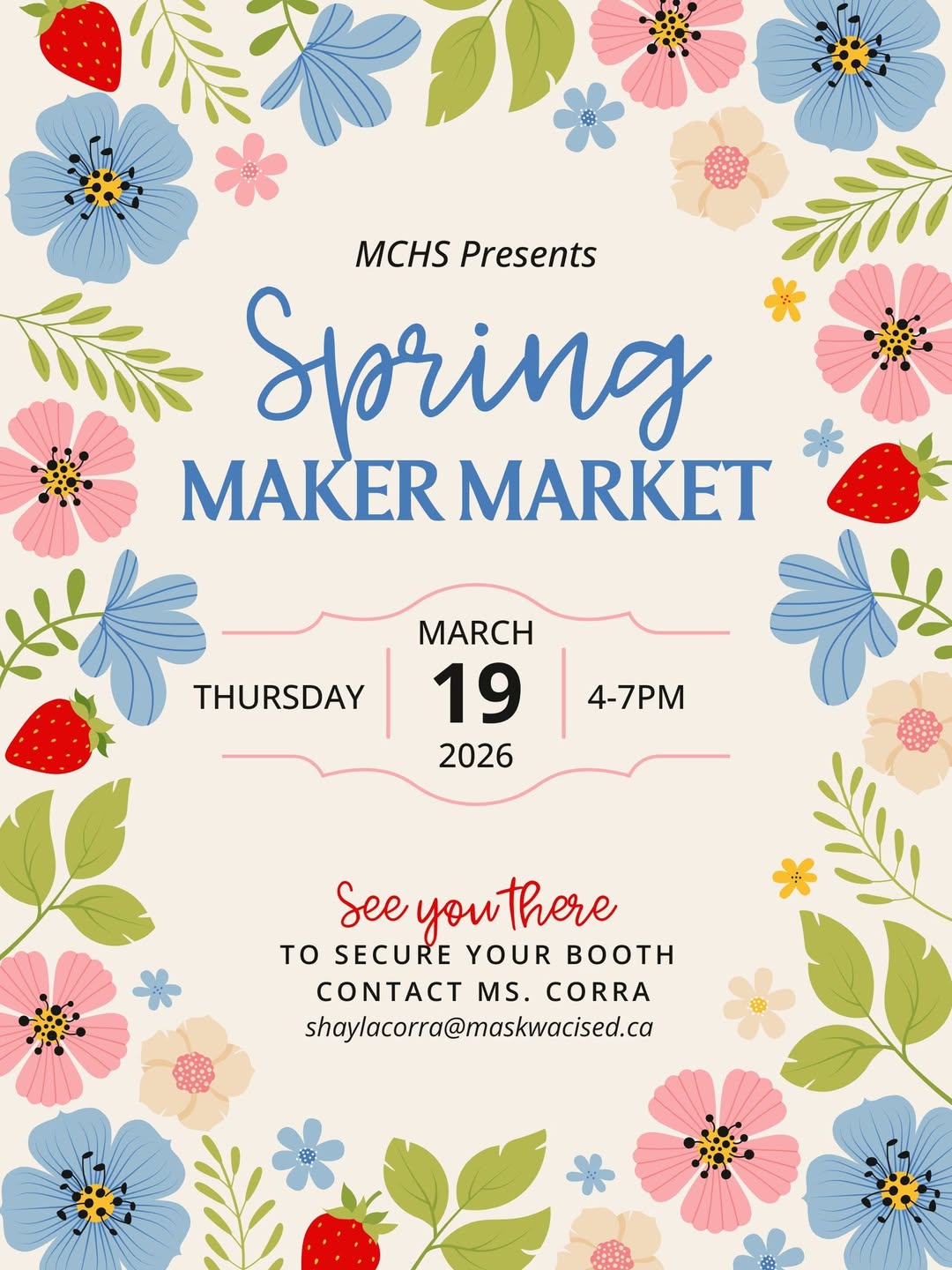 Happening on March 19th during the MESC parent engagement night! As always, your support is appreciated. All are welcome to stop by. 🌷🪻💐