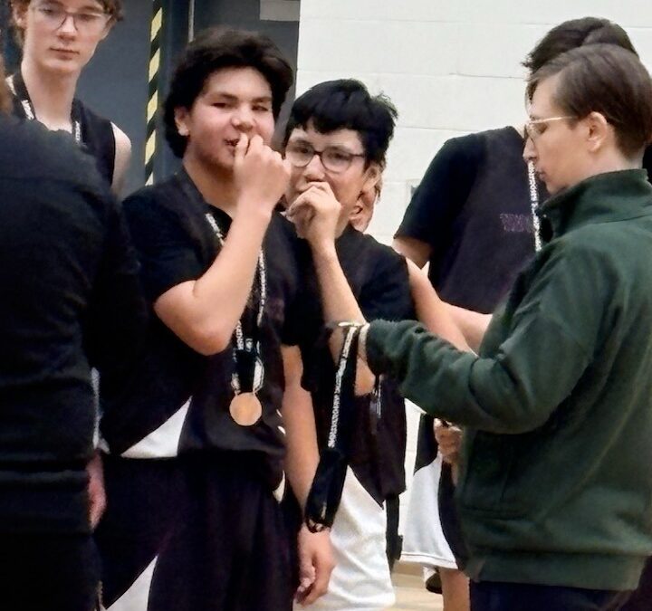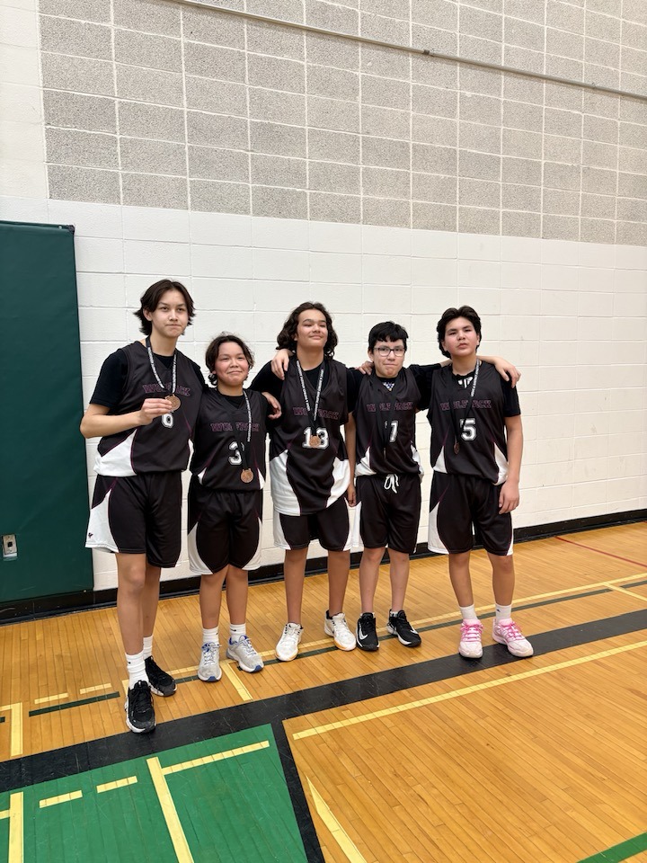 Hardest he’s worked for a medal; may have been bronze, but game was gold medal worthy; tied 41 – 41 – had to go another 5 min period; our boys won 47 to 43. Lucky them hockey arms came to play!! Proud of this kid, Wynter! Congrats to his Maskwacis team mates too – Parker, Dre, Chad, Dylan and Wynter; missing from photo Haven !
