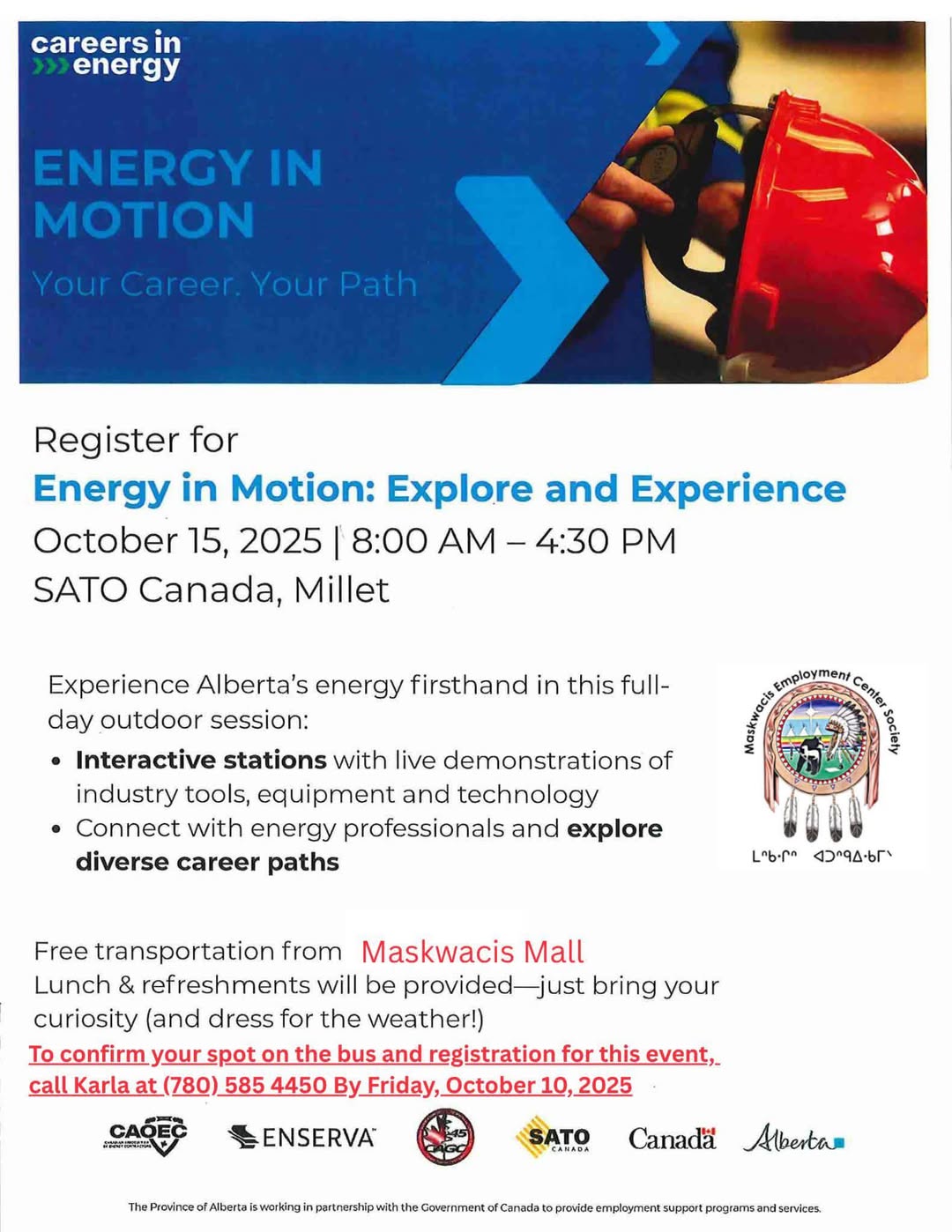 Call Karla at (780) 585 4450 to confirm your spot by October 10, 2025 at the latest.