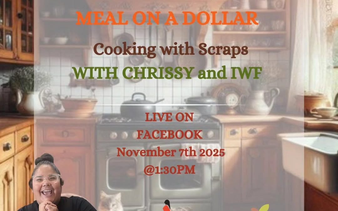 Join Chrissy and IWF and learn how to cook from leftover scraps live on Facebook!