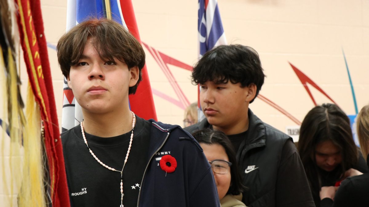 Students and guests joined together in two minutes of silence and listened to In Flanders Fields beautifully read in Cree. The ceremony concluded with a mini round dance.