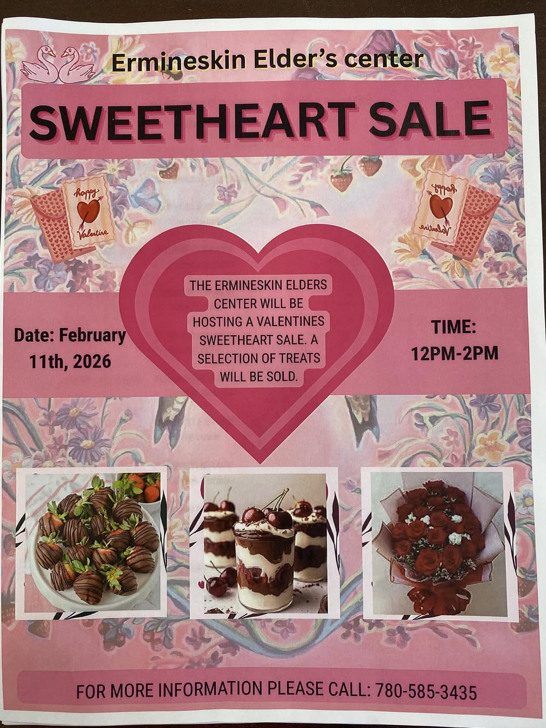Loving the love n inclusivity of programs here at the Ermineskin Cree Nation Elders Cultural Center. Just a reminder about tmrws Valentine’s Day fund raiser event. Anyone who wud like to show love for a family member, a besssfrenn, a sweetheart or the neechiemoose…come on over to support your local Elders 💞🥰🫶🏽 poster says 12, however we can start by 10 am…see u then. Bring the love ❤️🔥❤️🩹❤️🩷💘
