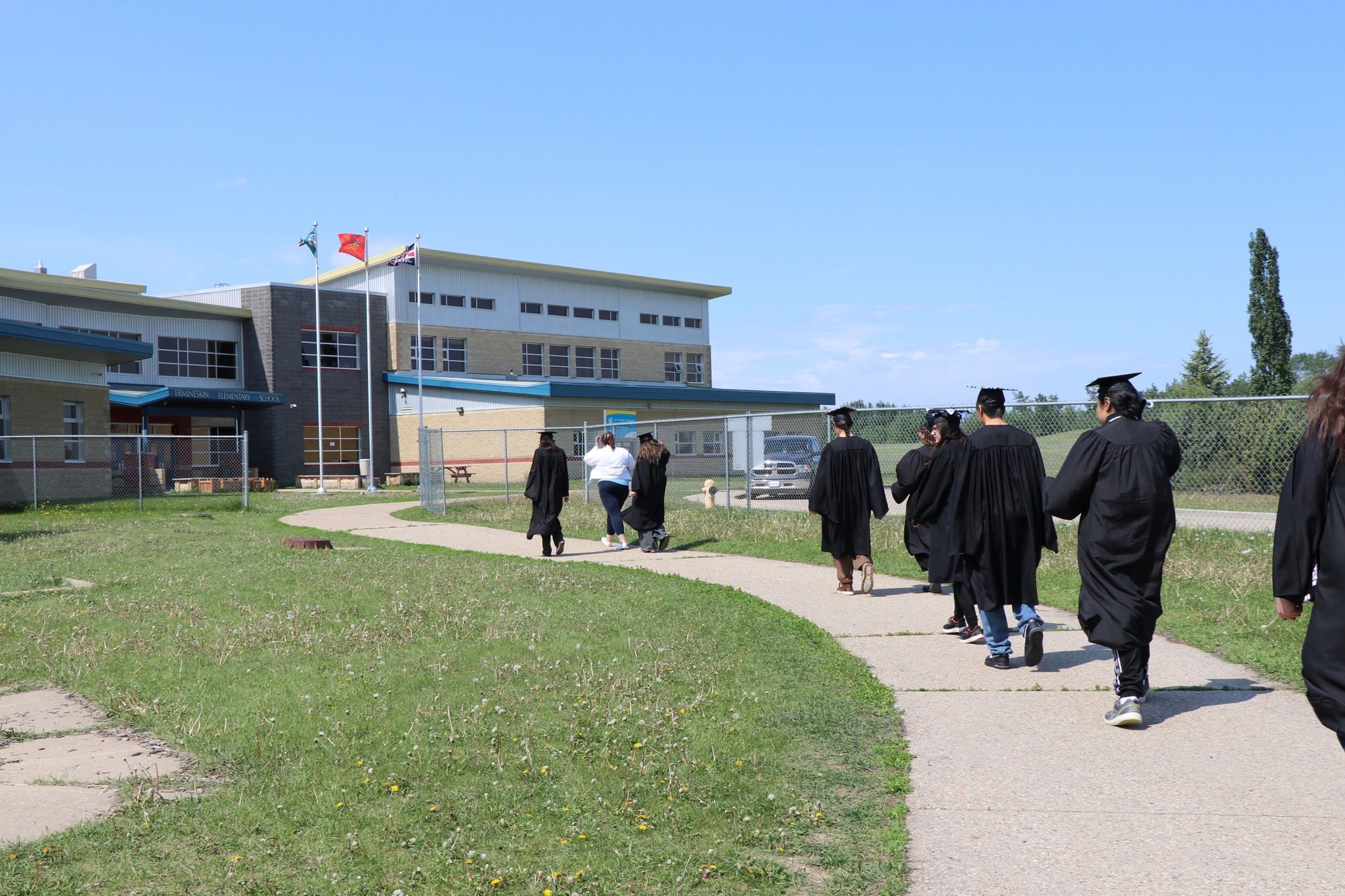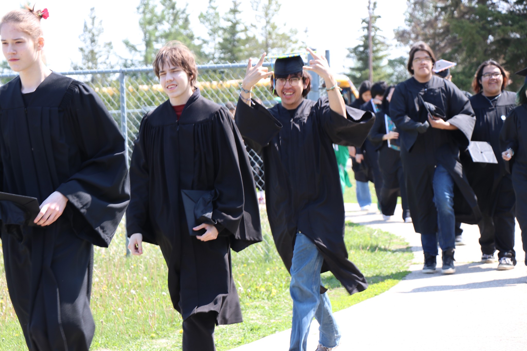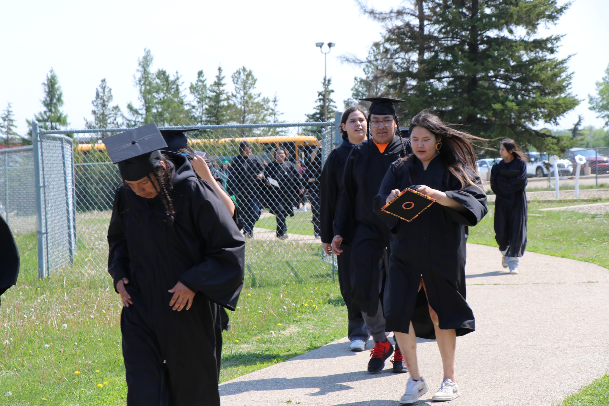 This meaningful tradition is more than just a celebration — it’s a powerful moment of connection across generations. It was incredible to witness teachers reunite with students they once taught in kindergarten, now all grown up and preparing to graduate. The walk not only celebrates the achievements of our graduates but also inspires the younger awâsisak, showing them what’s possible with dedication and support.