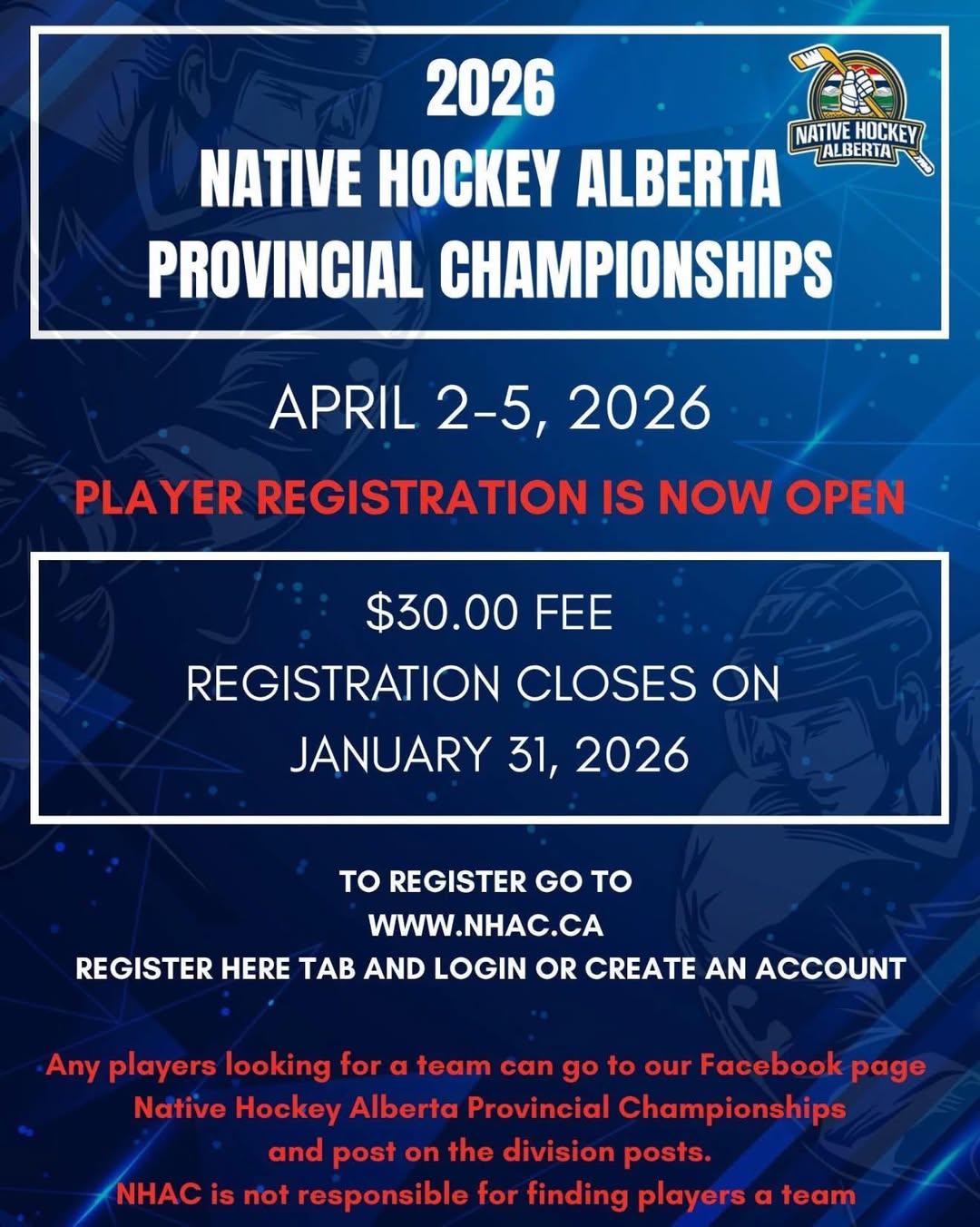 Native Hockey Alberta Provincials 2026 is now open for registration. Registration closes January 31, 2026
