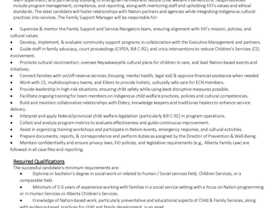 Cree Language and Teachings Coordinator – Open Competition Deadline: January 25, 2026 Submit Resume Cover […]