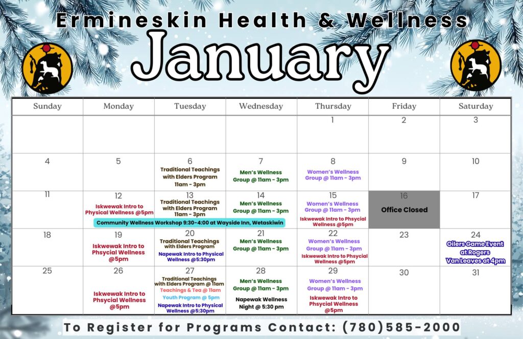 January 21, 2026Published by Erimineskin at January 21, 2026Categories FacebookTansi Neyaskweyahk! Here is our January Calendar of Programs and Events that we have going on at the…Tansi Neyaskweyahk! Here is our January Calendar of Programs and Events that we have going […]