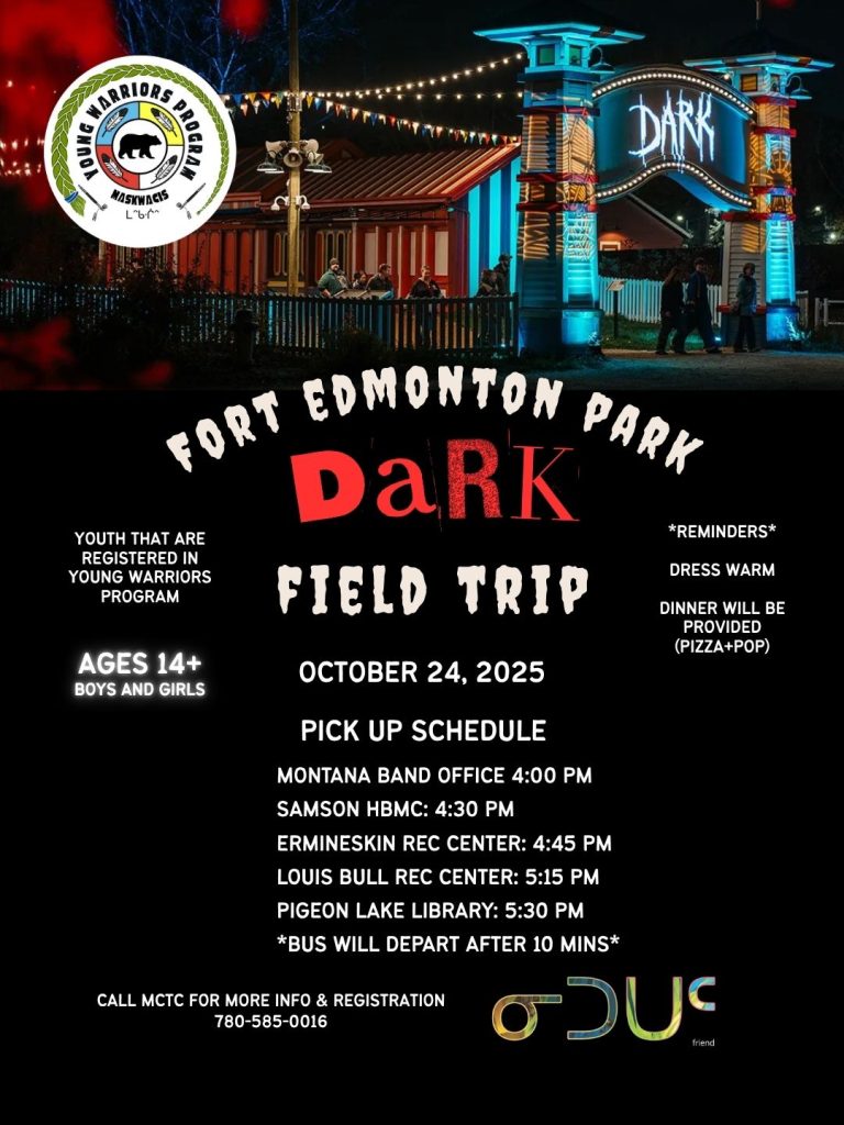October 7, 2025Published by Erimineskin at October 7, 2025Categories FacebookAttention Young Warriors ages 14+! Get ready for an exciting night at the Fort Edmonton Park DARK F…Attention Young Warriors ages 14+! 👻Get ready for an exciting night at the Fort Edmonton […]