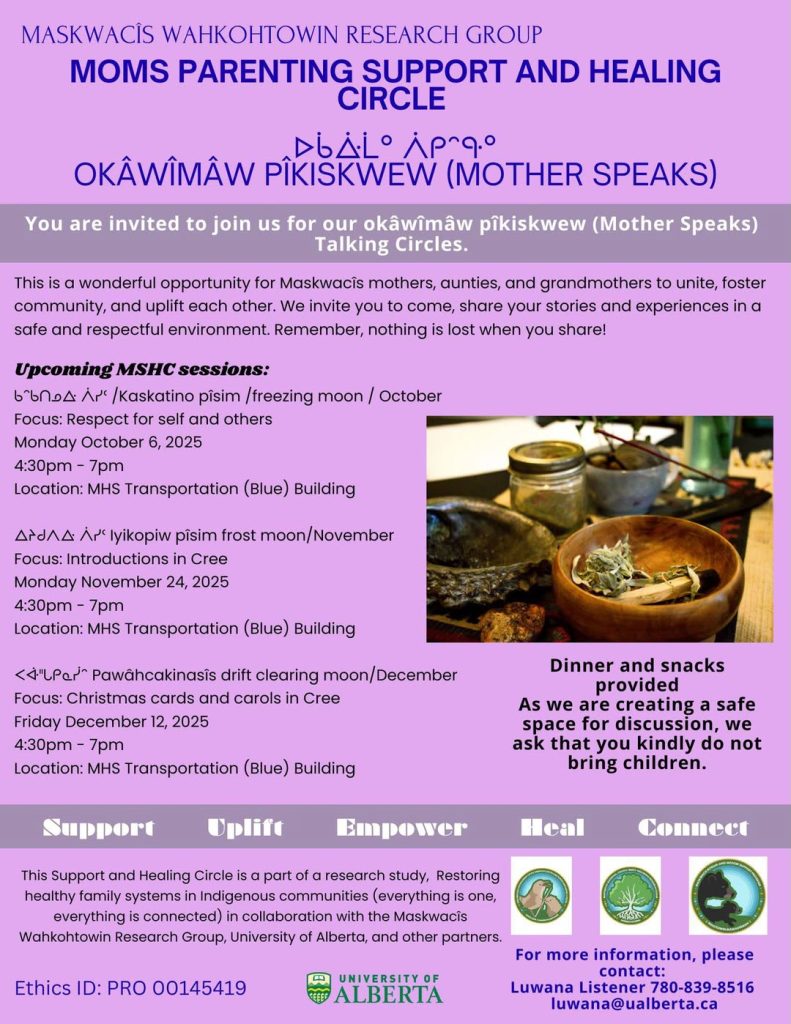 October 1, 2025Published by Erimineskin at October 1, 2025Categories FacebookYou are invited to join the Moms Support and Healing Circle (MSHC) for our okâwĂ®mâw pĂ®kiskwew (mothe…You are invited to join the Moms Support and Healing Circle (MSHC) for our okâwĂ®mâw […]