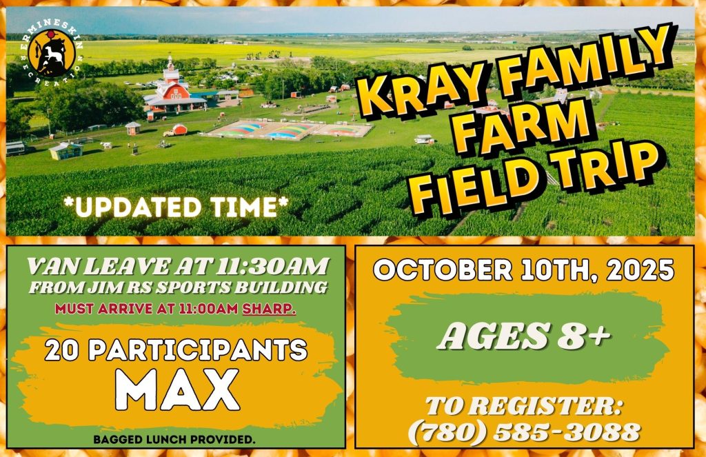 October 1, 2025Published by Erimineskin at October 1, 2025Categories FacebookErmineskin Recreation: Kray Family Farm Trip October 10, 2025 Lacombe, AB 12:00pm (Van leaves) *…Ermineskin Recreation: Kray Family Farm Trip đź“… October 10, 2025 📍Lacombe, AB đź•’ 12:00pm (Van […]