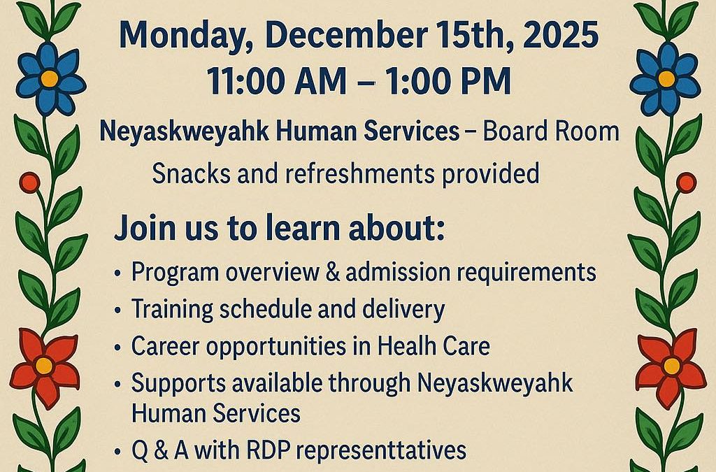 Neyaskweyahk Human Services and Red Deer Polytechnic invite you to an Open House and Info Session for the Health Care Aide Certification Program.