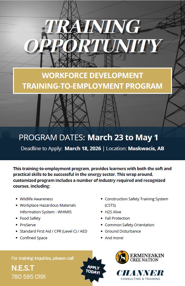 Neywaskweyahk Employment Skills Training presents: WORKFORCE DEVELOPMENT TRAINING Open to all 4 n…