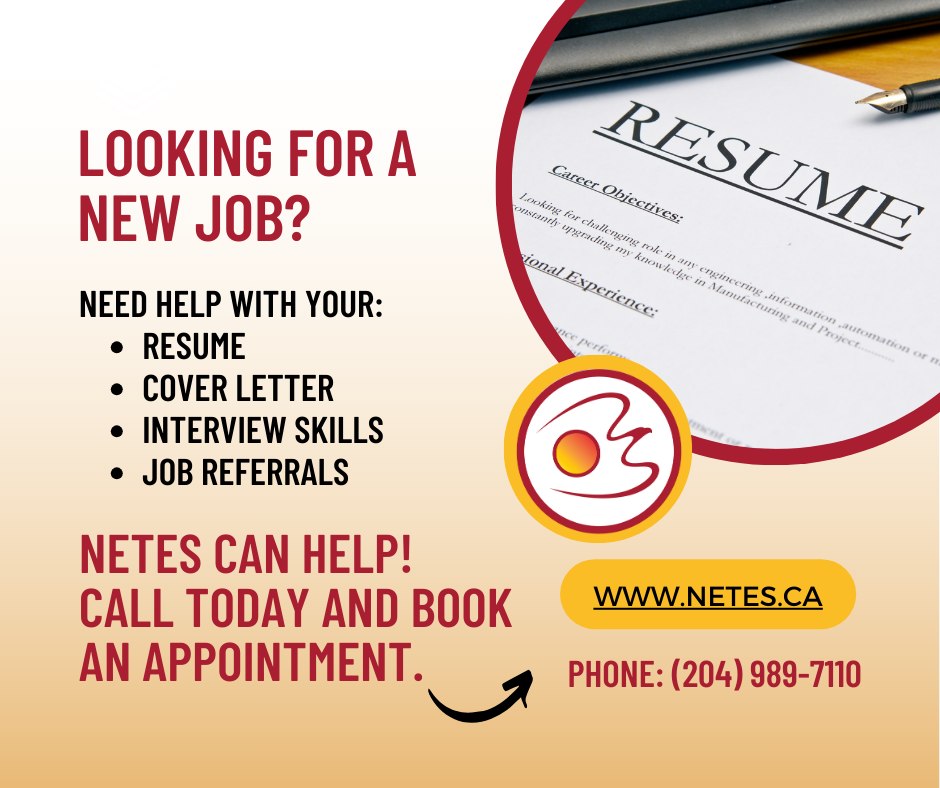 📞 Call us at (204) 989-7110 to make an appointment with an Employment Counsellor. We’ll help your resume and job search!