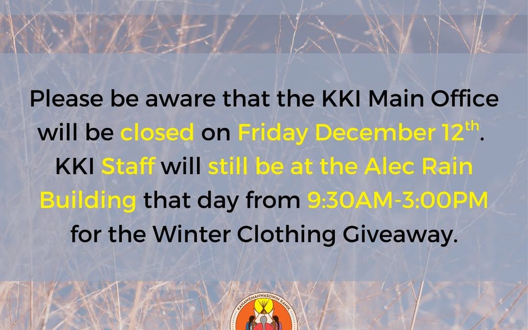 KKI Main Offices will be closed on Friday December 12th due to inclement weather.