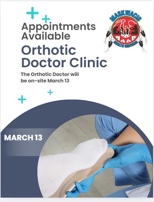 Maskwacis Health Services is hosting an Orthotic Doctor Clinic on March 13.