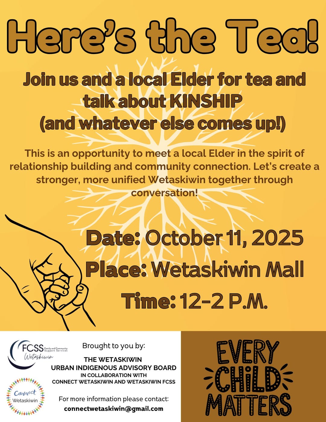 Our 3rd Here’s The Tea session is happening next Saturday, October 11 from 12-2pm at the Wetaskiwin …