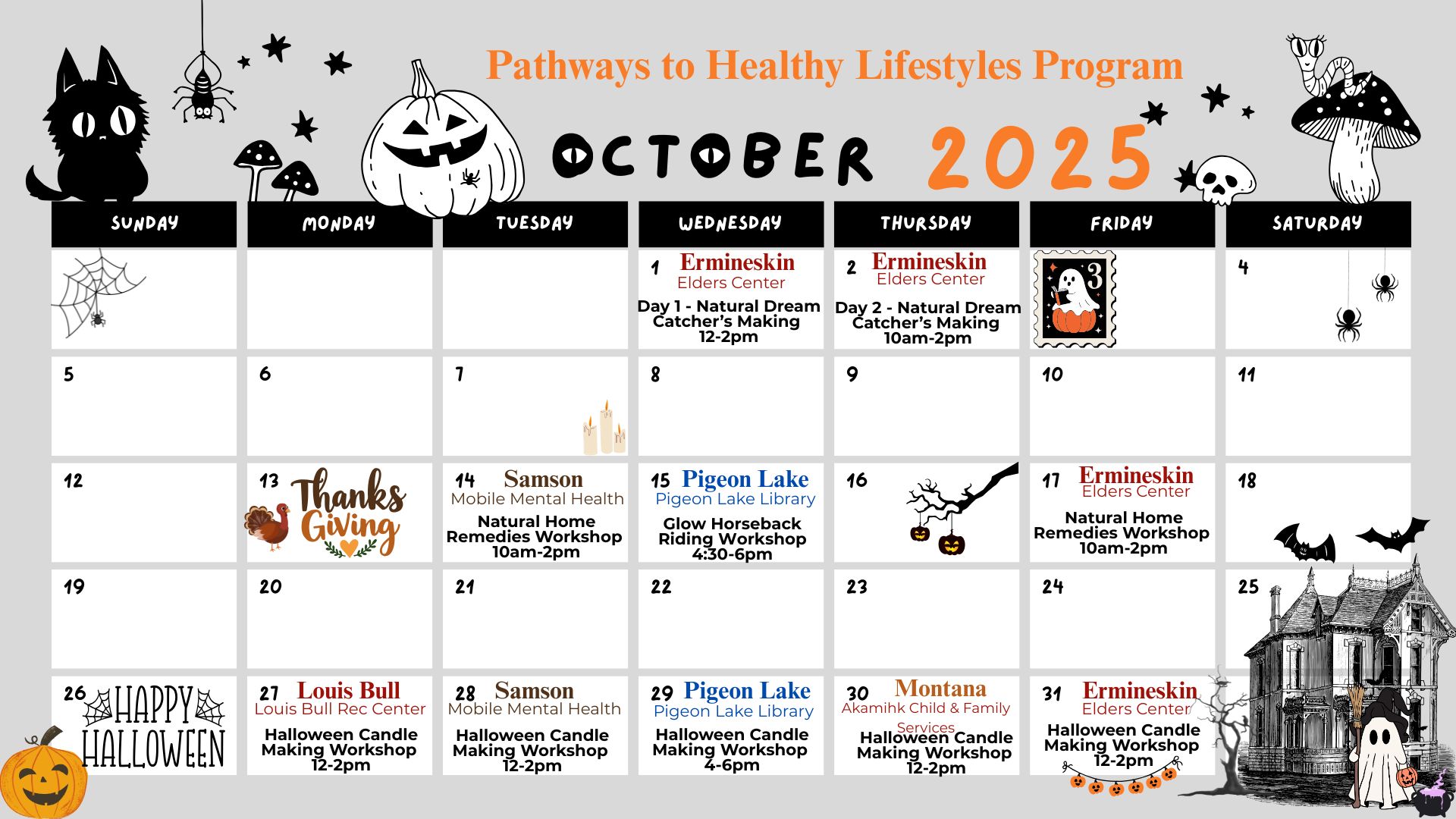 Our monthly calendar for October!