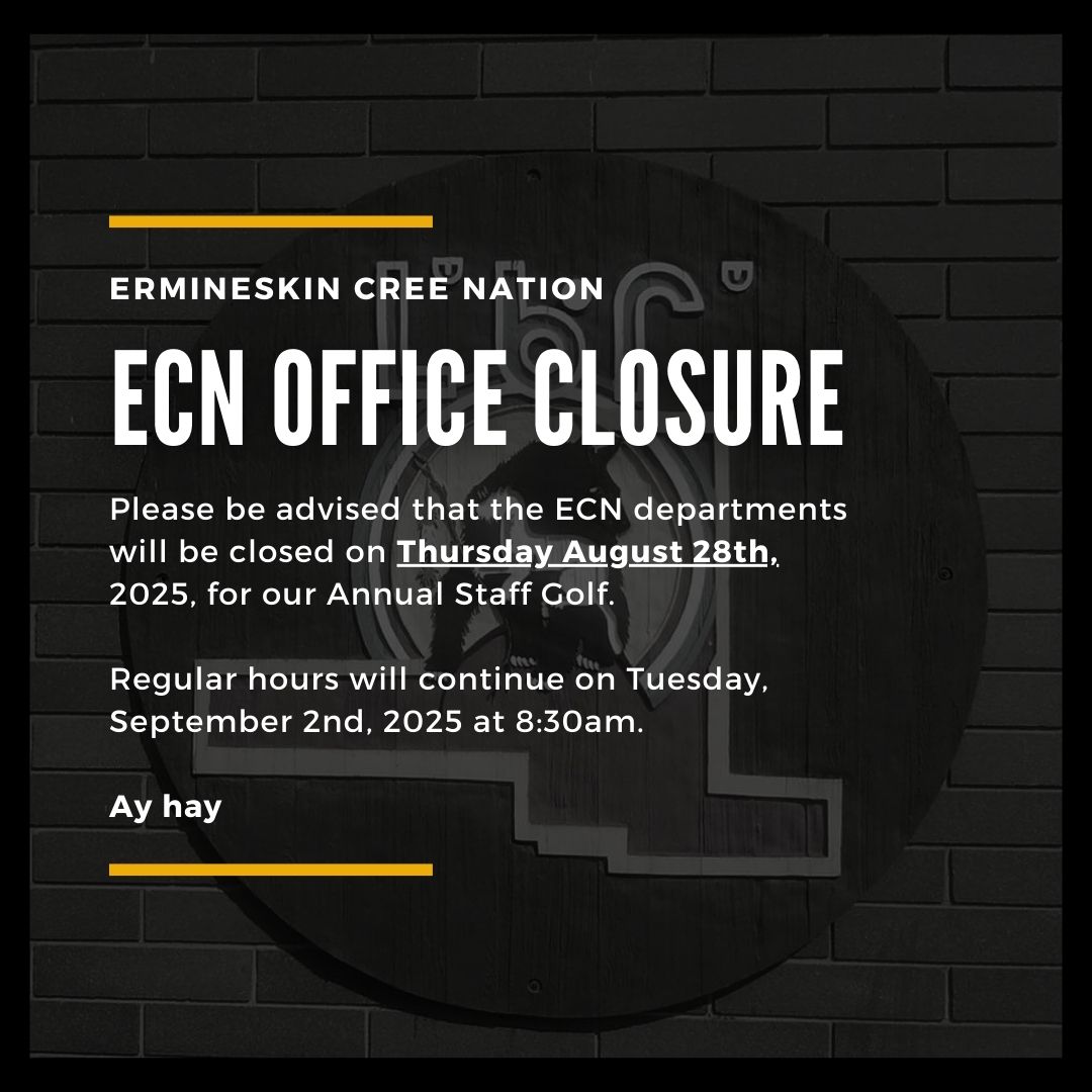 Please be advised that the ECN departments will be closed on Thursday August 28th, 2025, for our Annual Staff Golf.