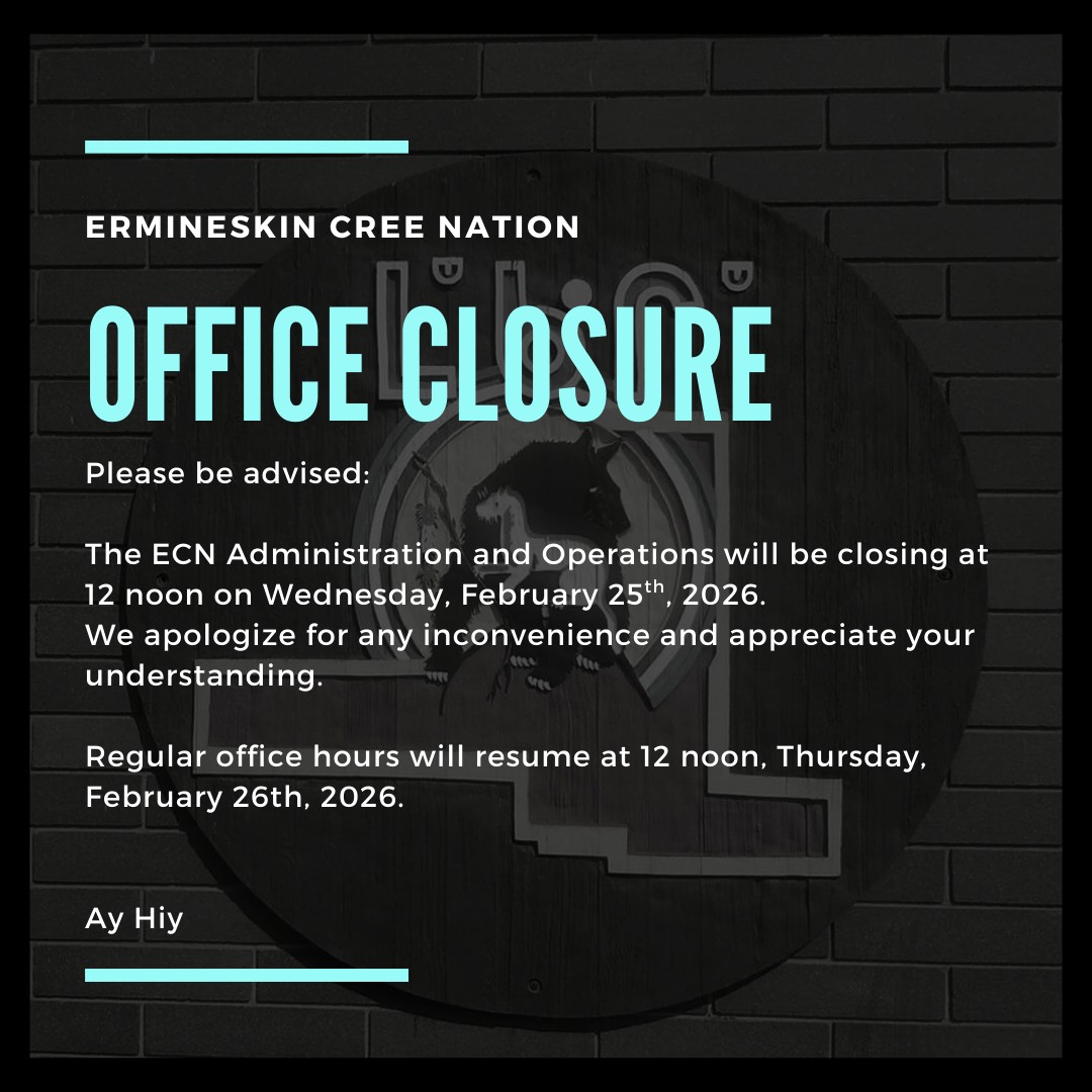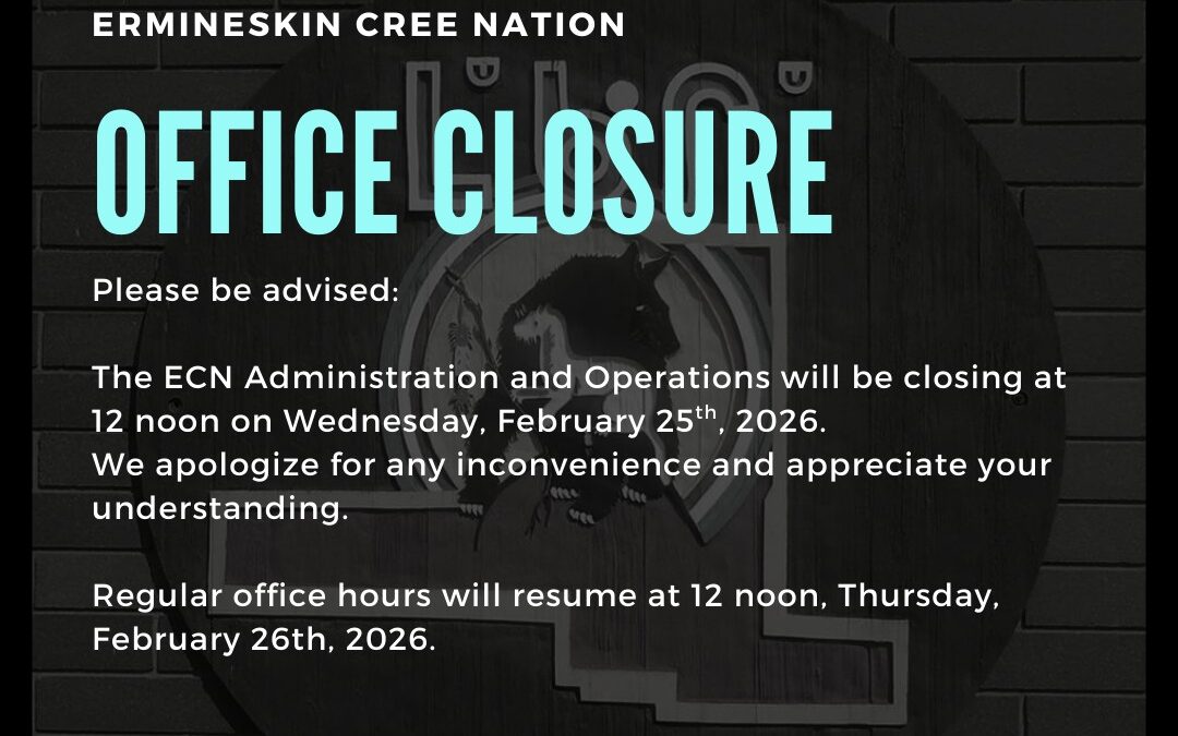 Please be advised: The ECN Administration and Operations will be closed at 12 noon on Wednesday, February 25th, 2026.