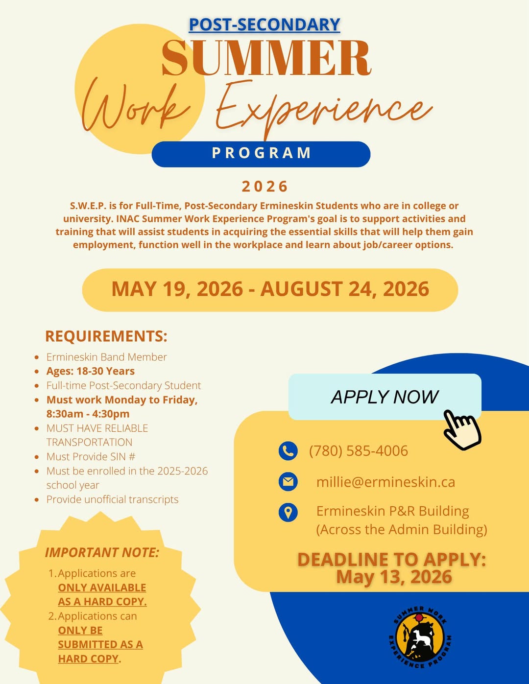Deadline to apply is: MAY 13, 2026