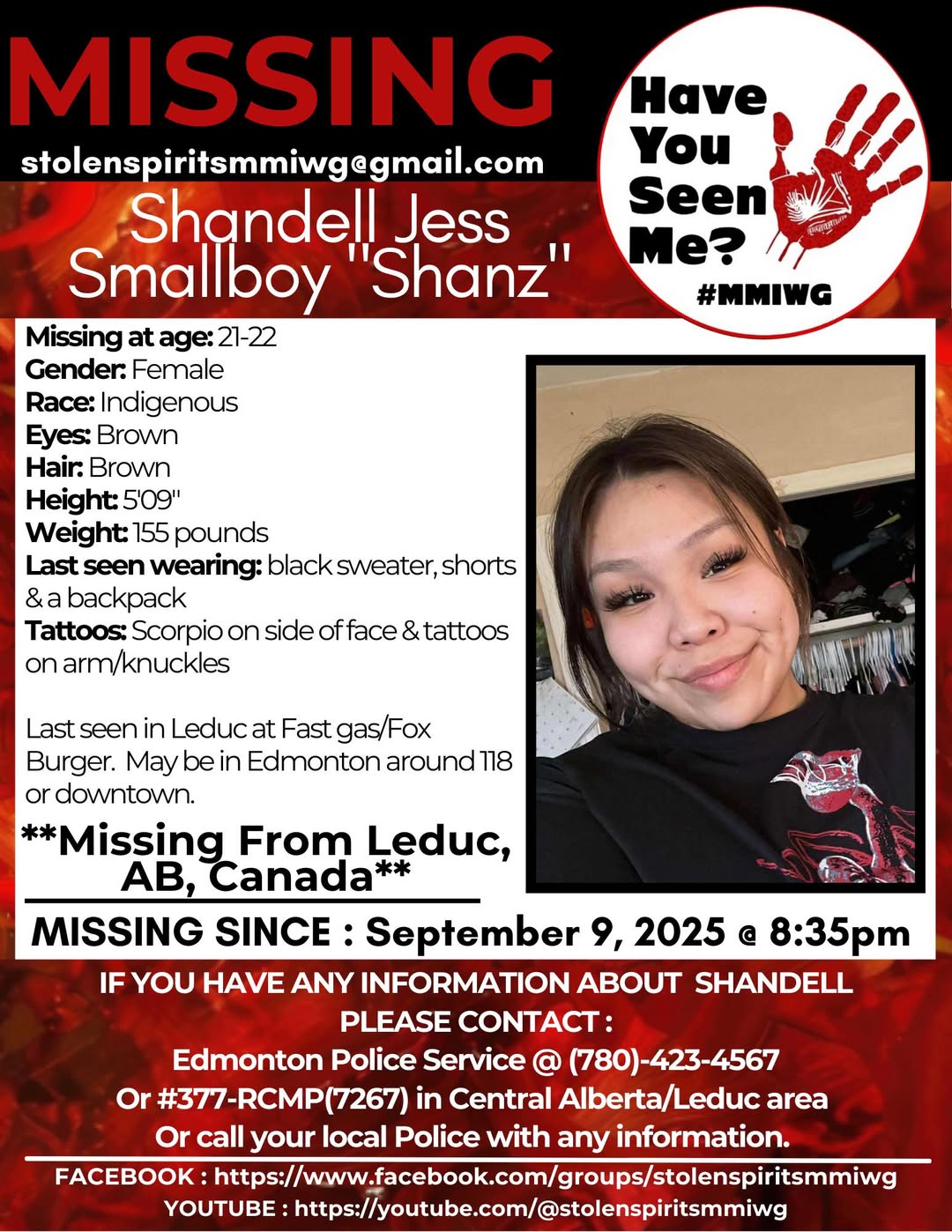 #MissingIndigenous #MissinginCanada #ShandellJessSmallboy #leducabcanada