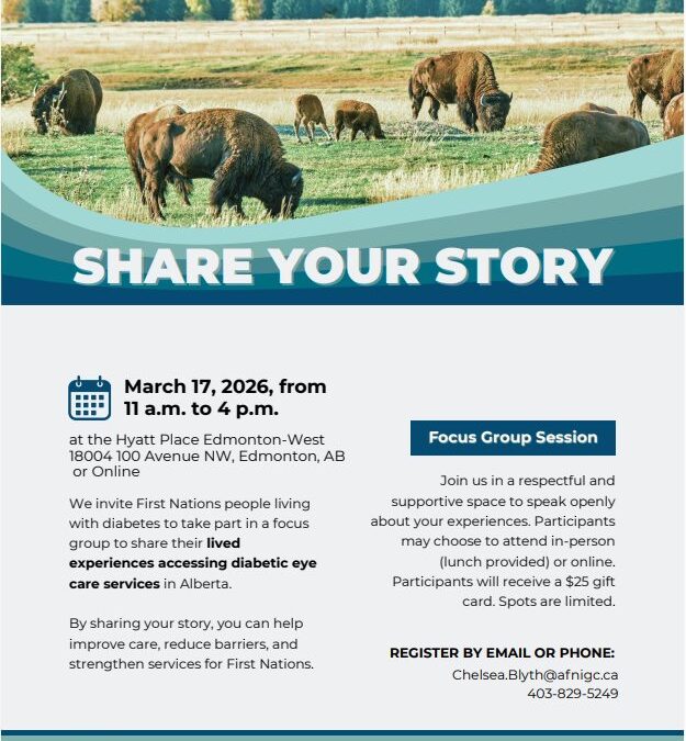 First Nations people living with diabetes are invited to participate in a focus group about accessing diabetic eye care services in Alberta.