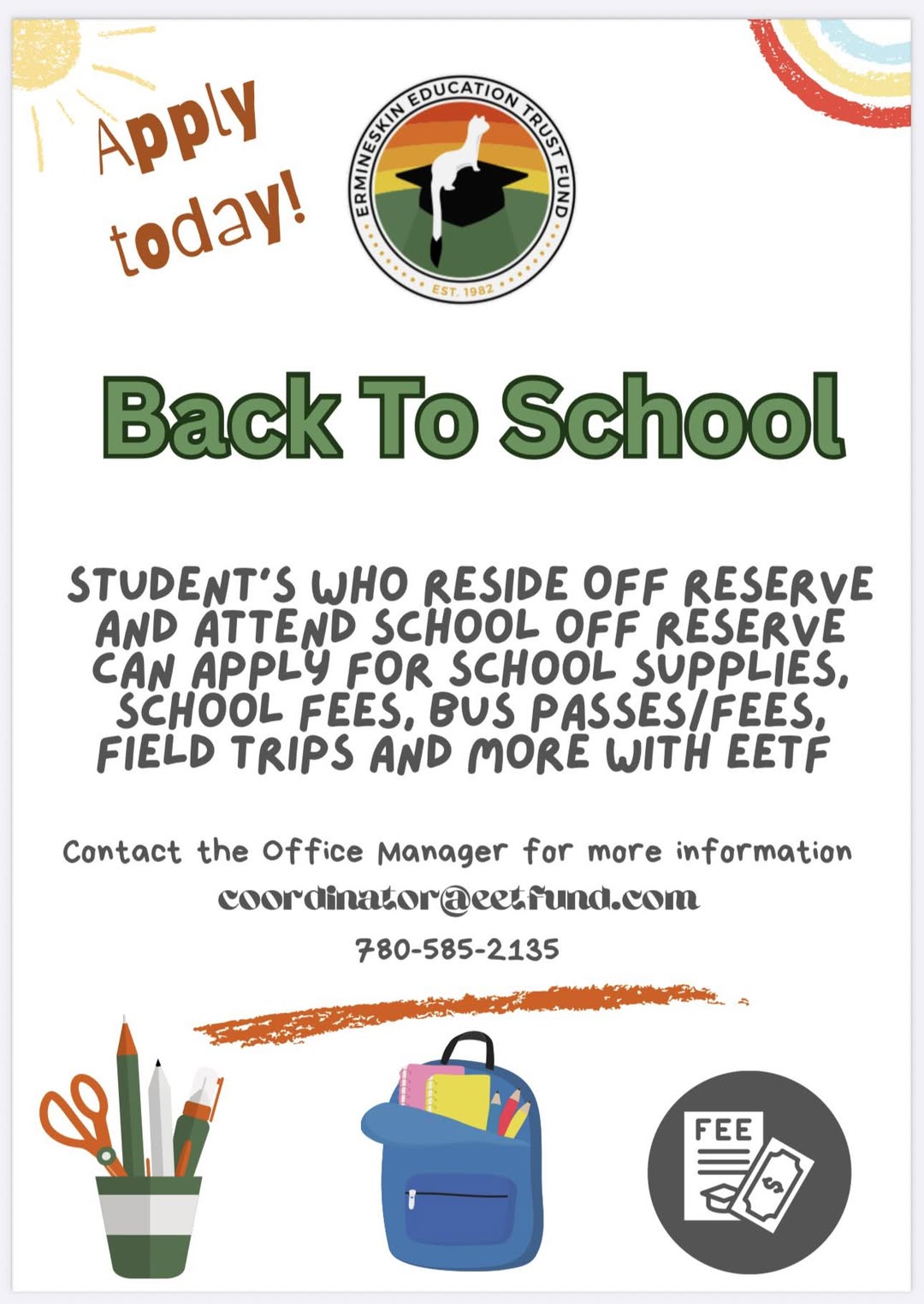 Starting August 1st all student’s who reside off reserve and attend school off reserve can apply for the following incentives:
