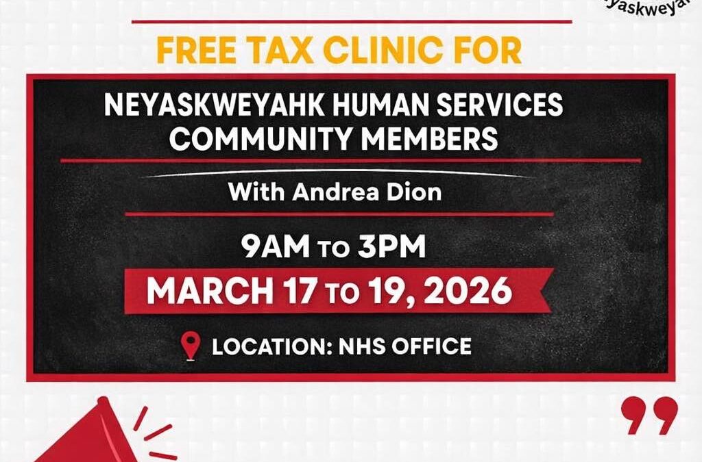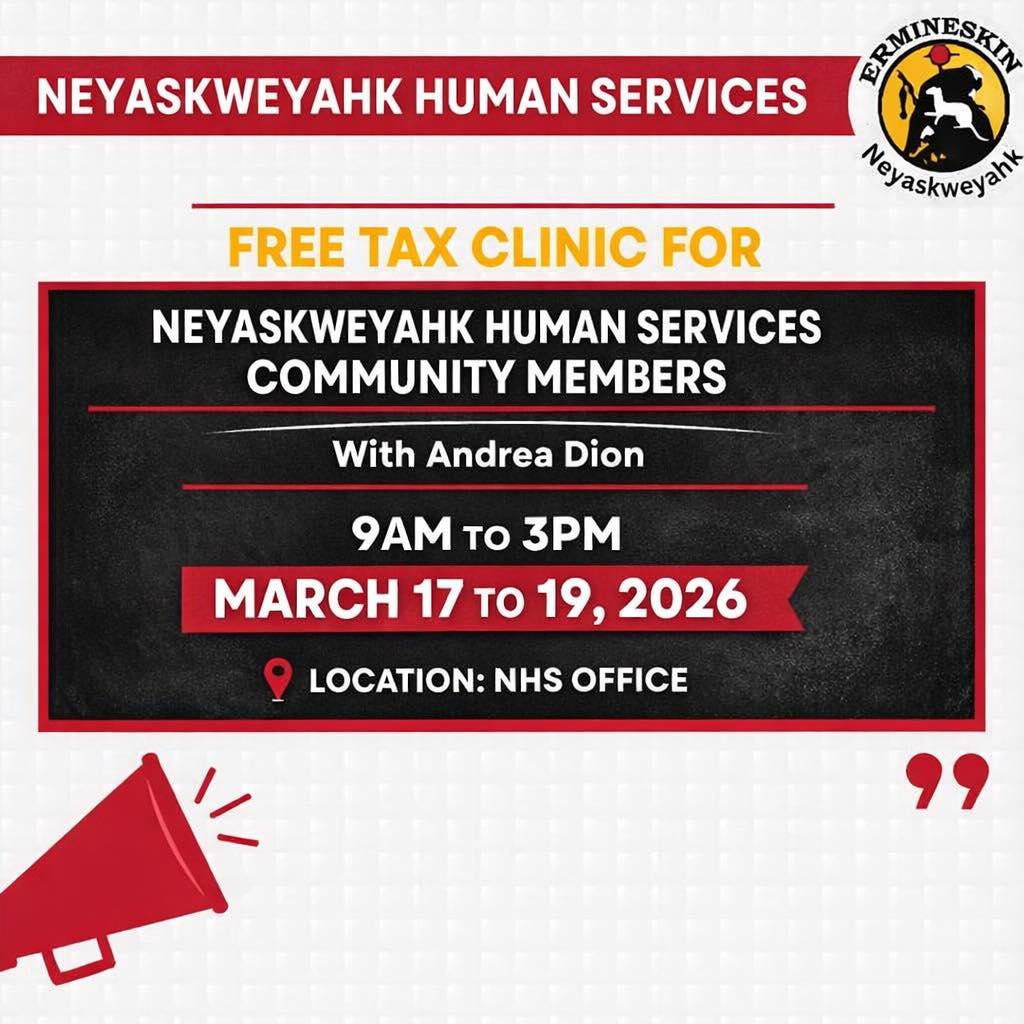Neyaskweyahk Human Services is offering a FREE Tax Clinic for community members.