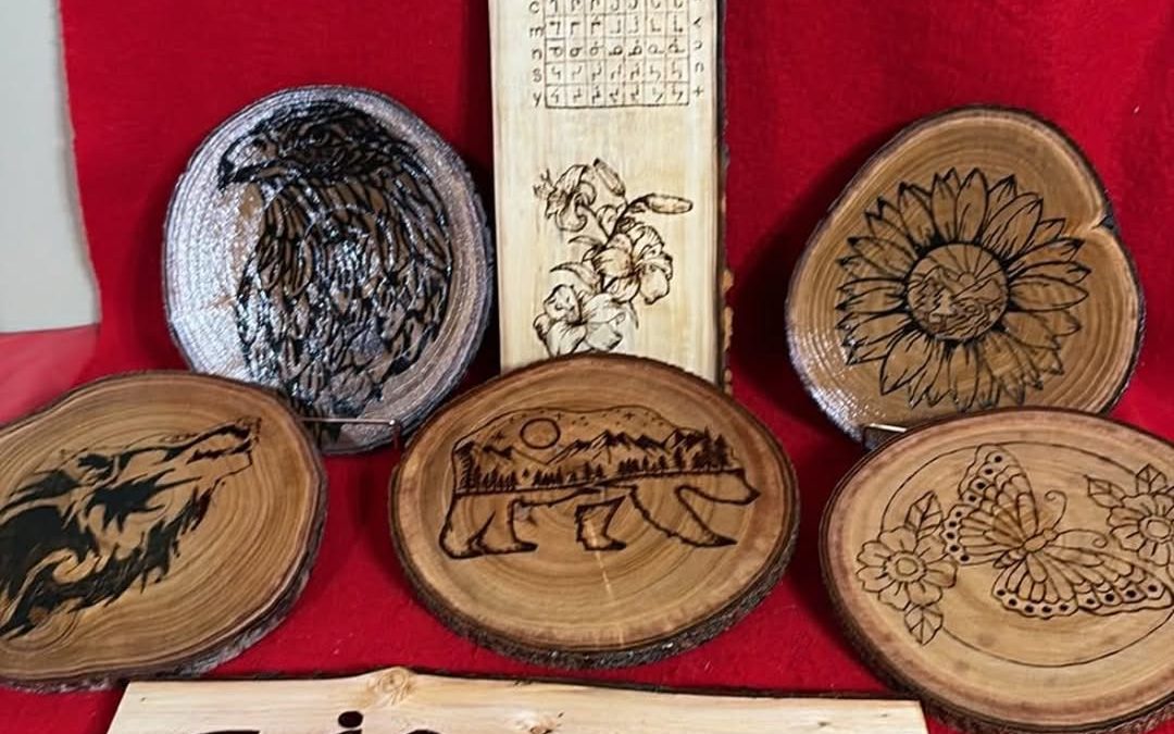 The beautiful wood burning crafts from last Fridays workshop! So much talent!!! We have more worksh…