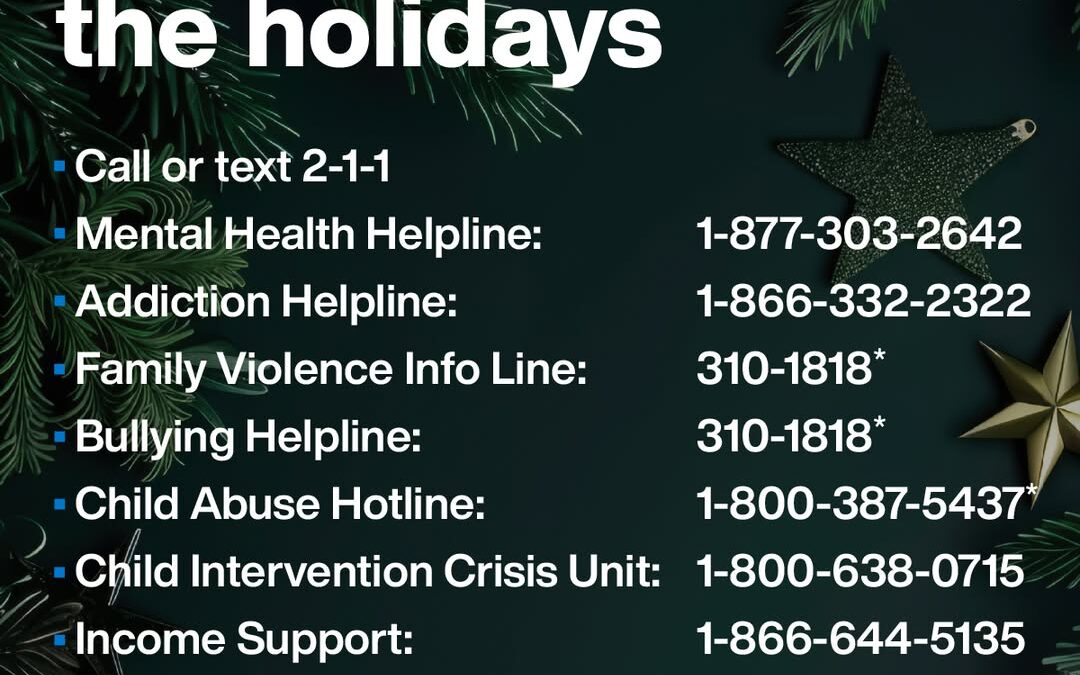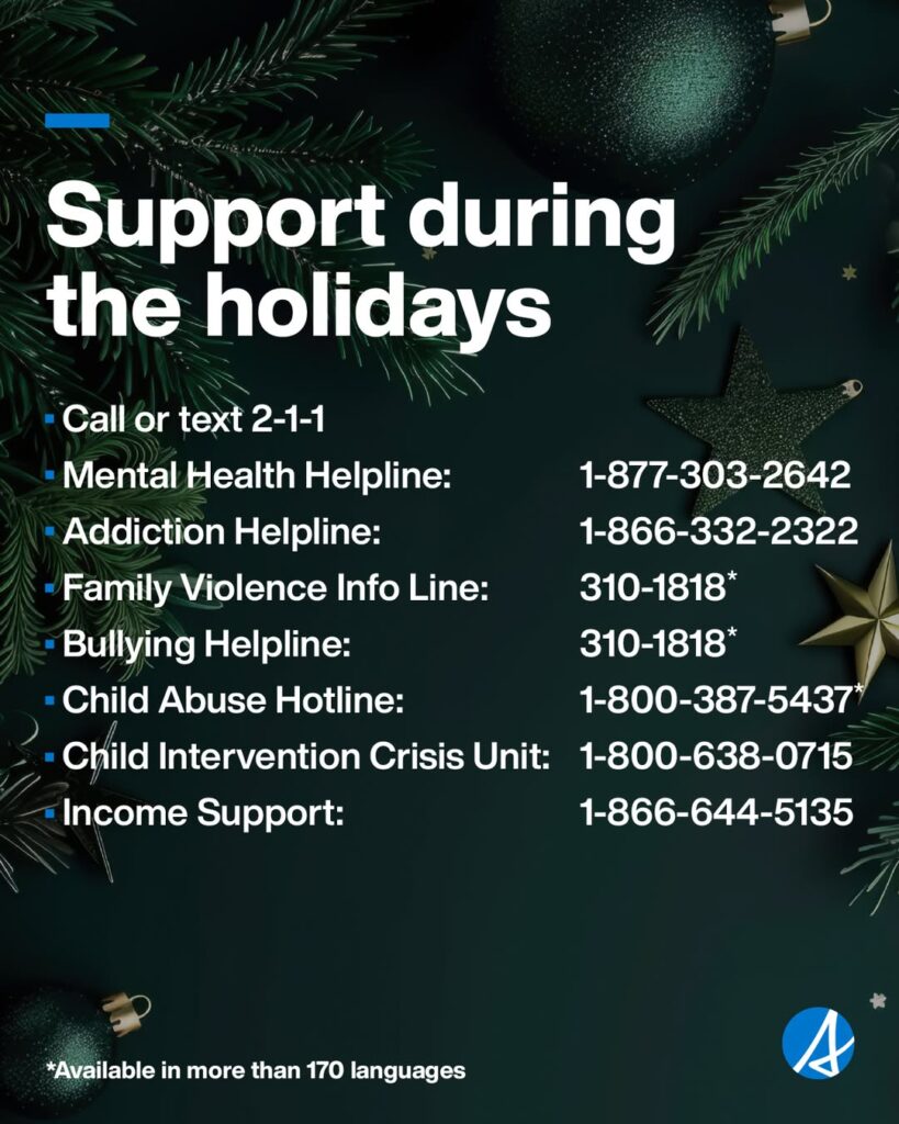 The holidays can be a difficult time. Please reach out if you or someone you know needs support.